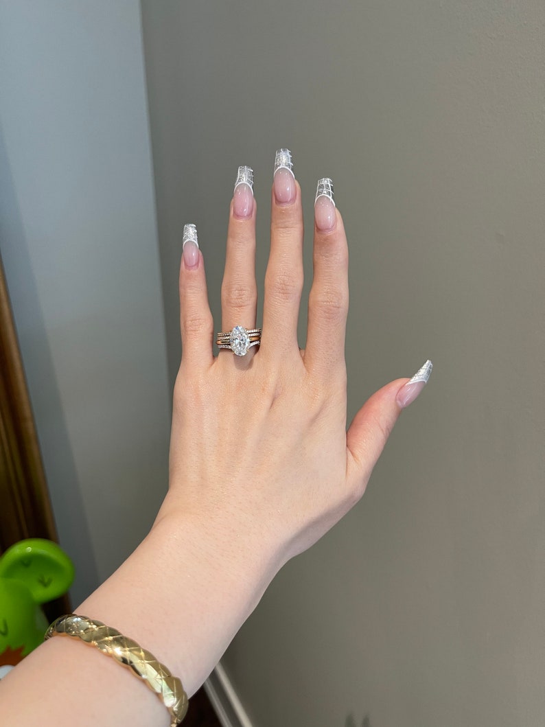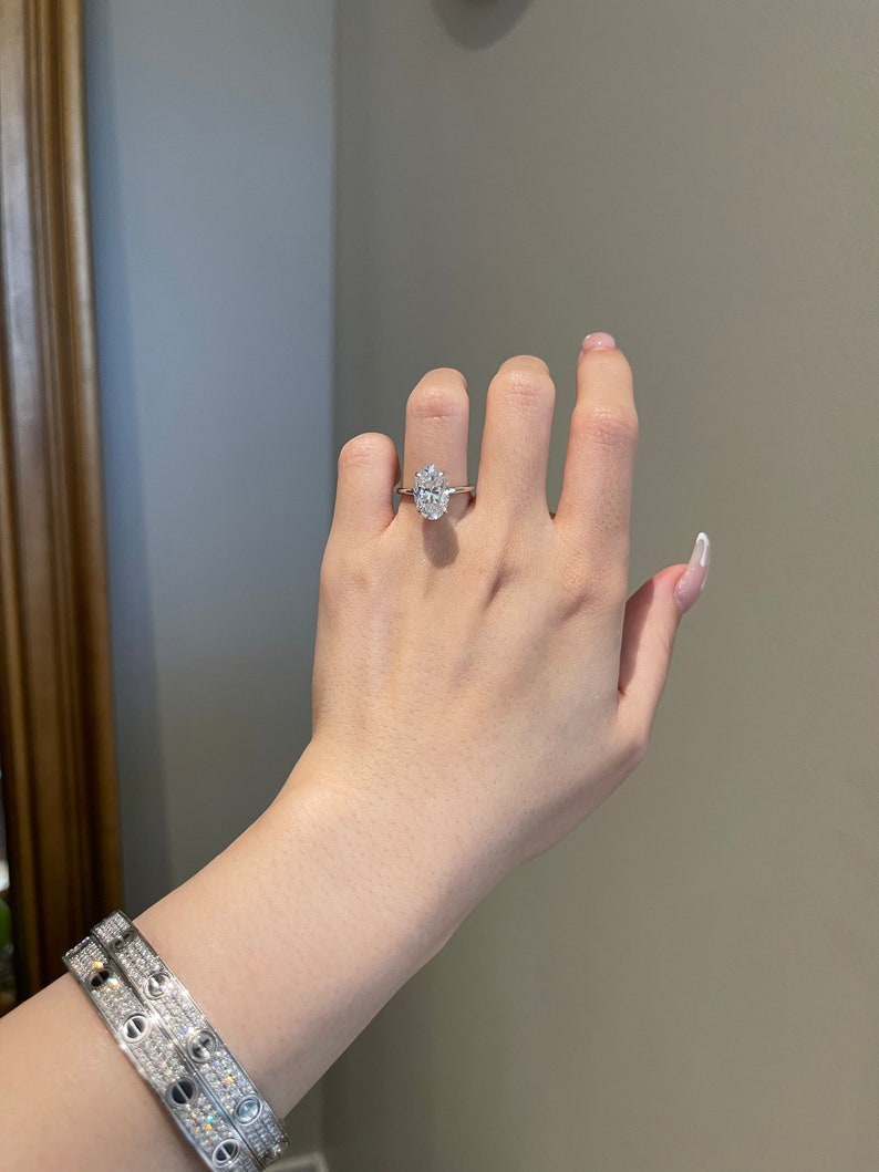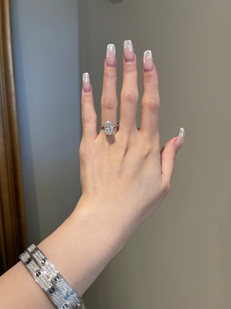 4.0CT Elongated Oval Diamond Hidden Halo Moissanite Engagement Ring