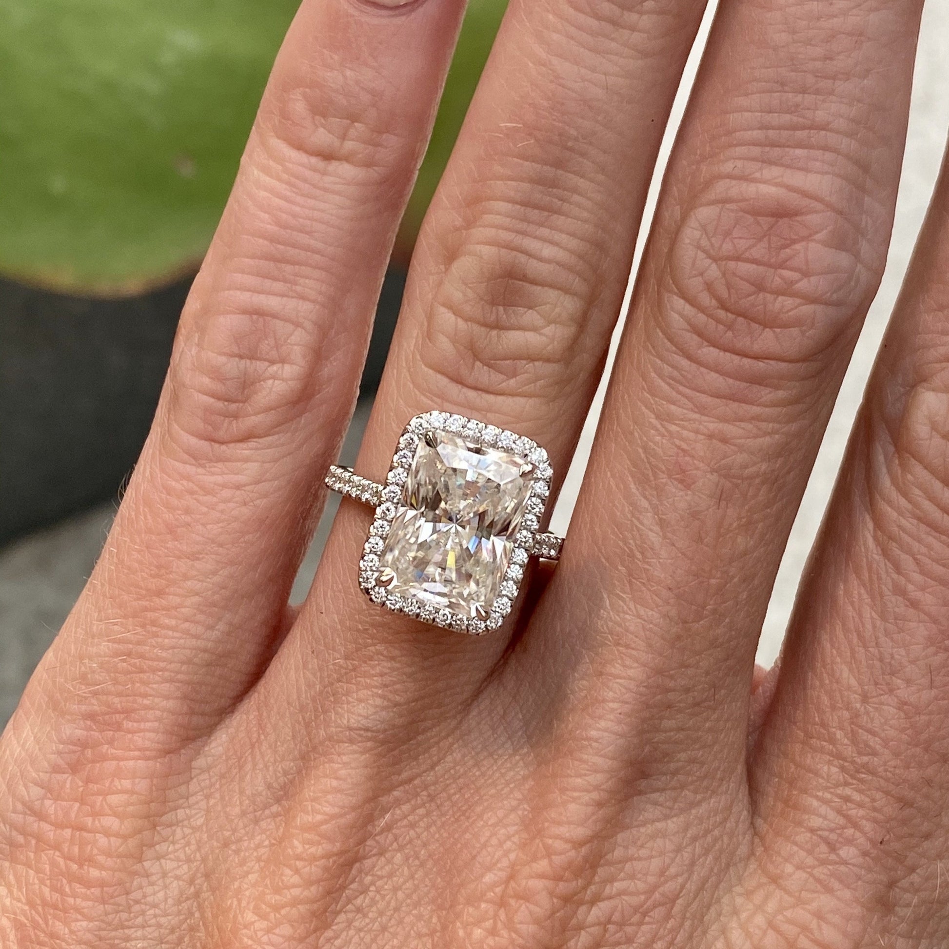 5.2CT Radiant Diamond Hidden Halo Moissanite Engagement Ring