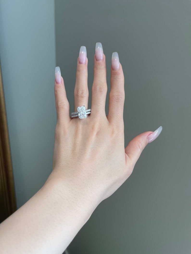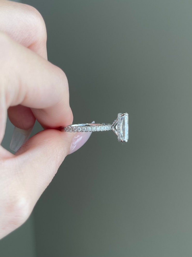 5.0CT Elongated Radiant Cut Diamond Pave Moissanite Engagement Ring