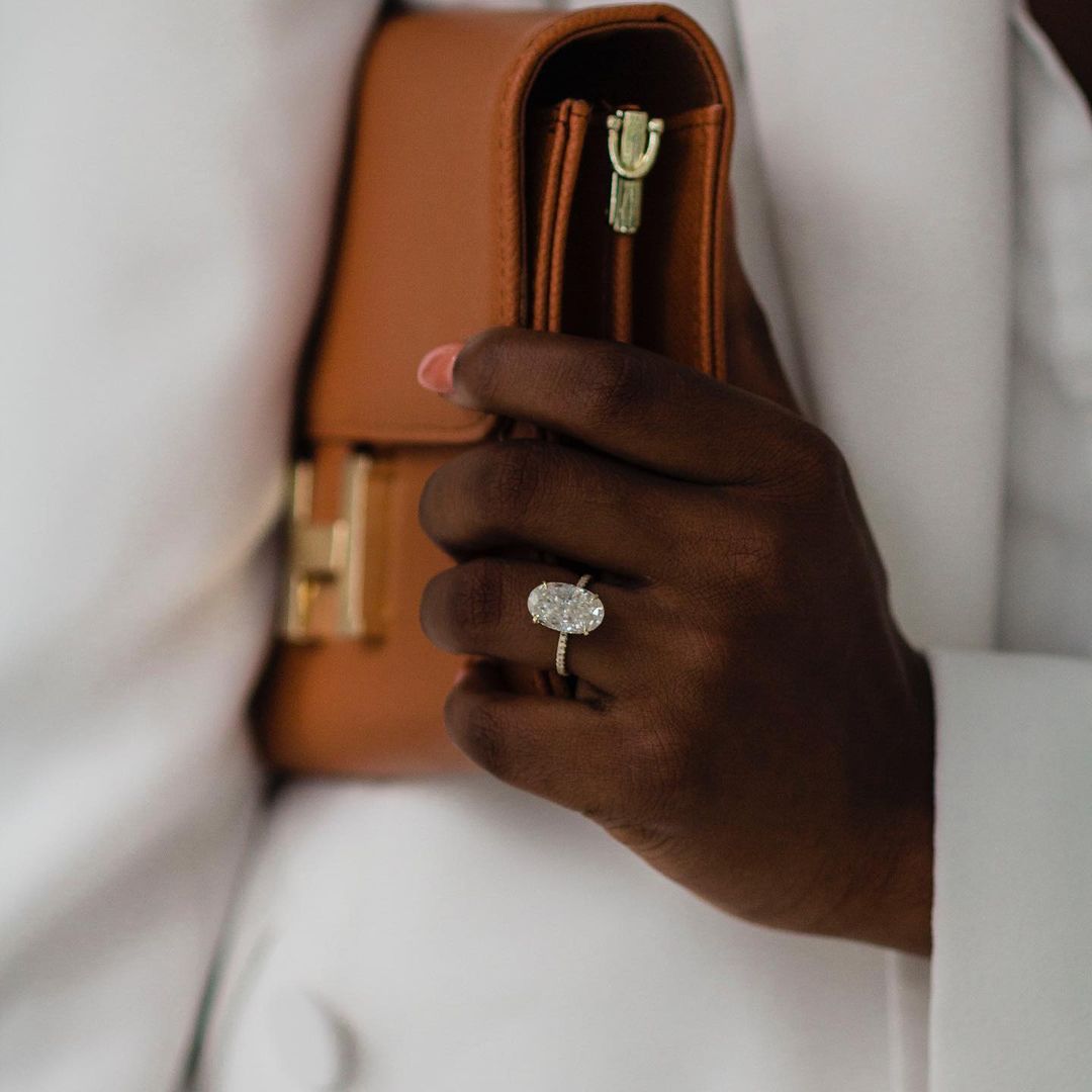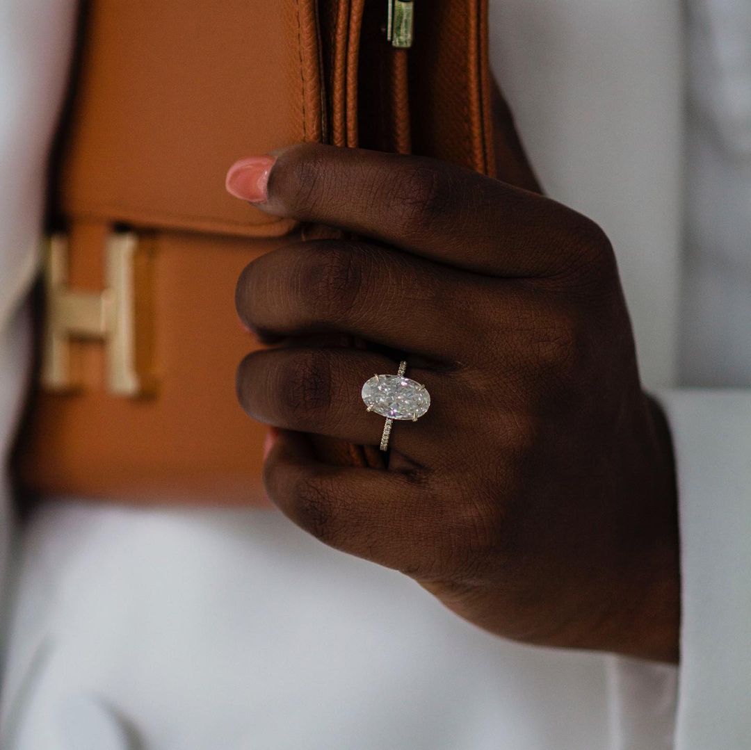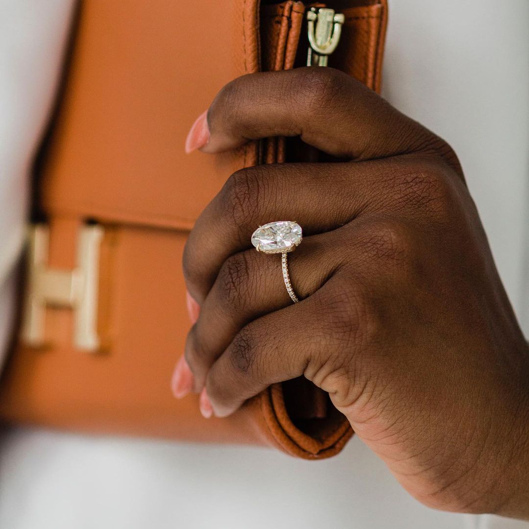 ✥ The Ring Shown in the Picture Holds a Beautiful 6.20 CT Oval Cut Moissanite.