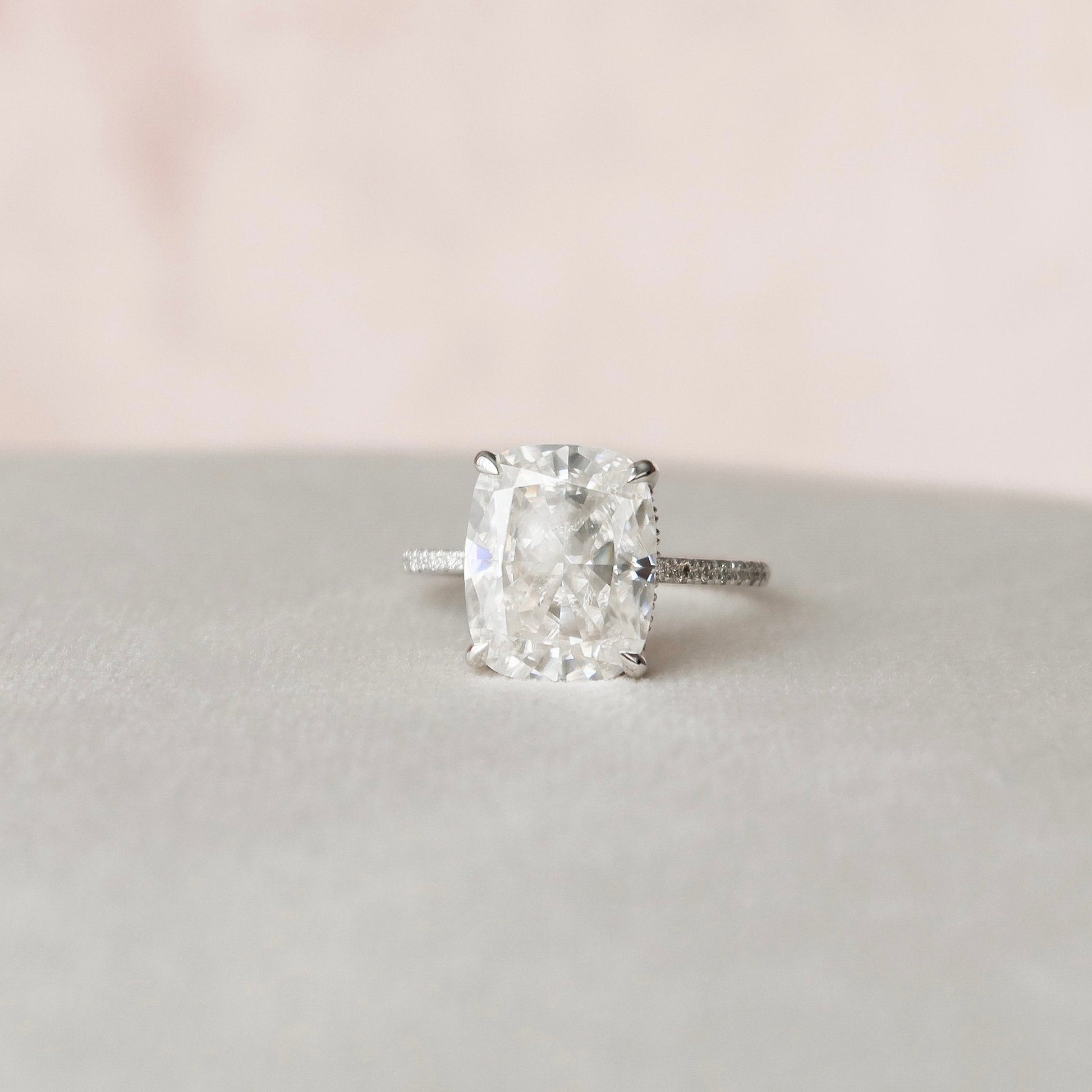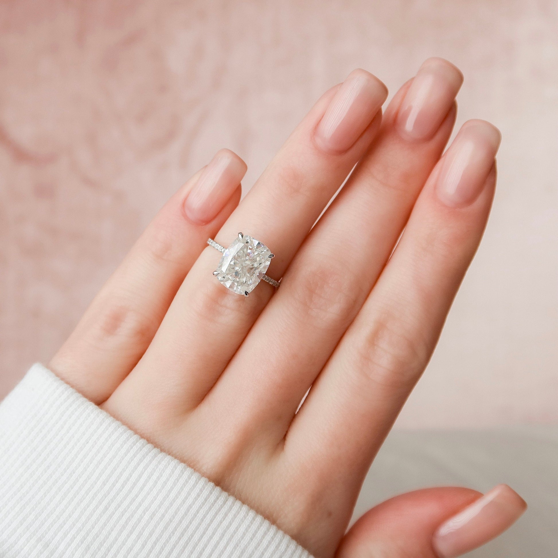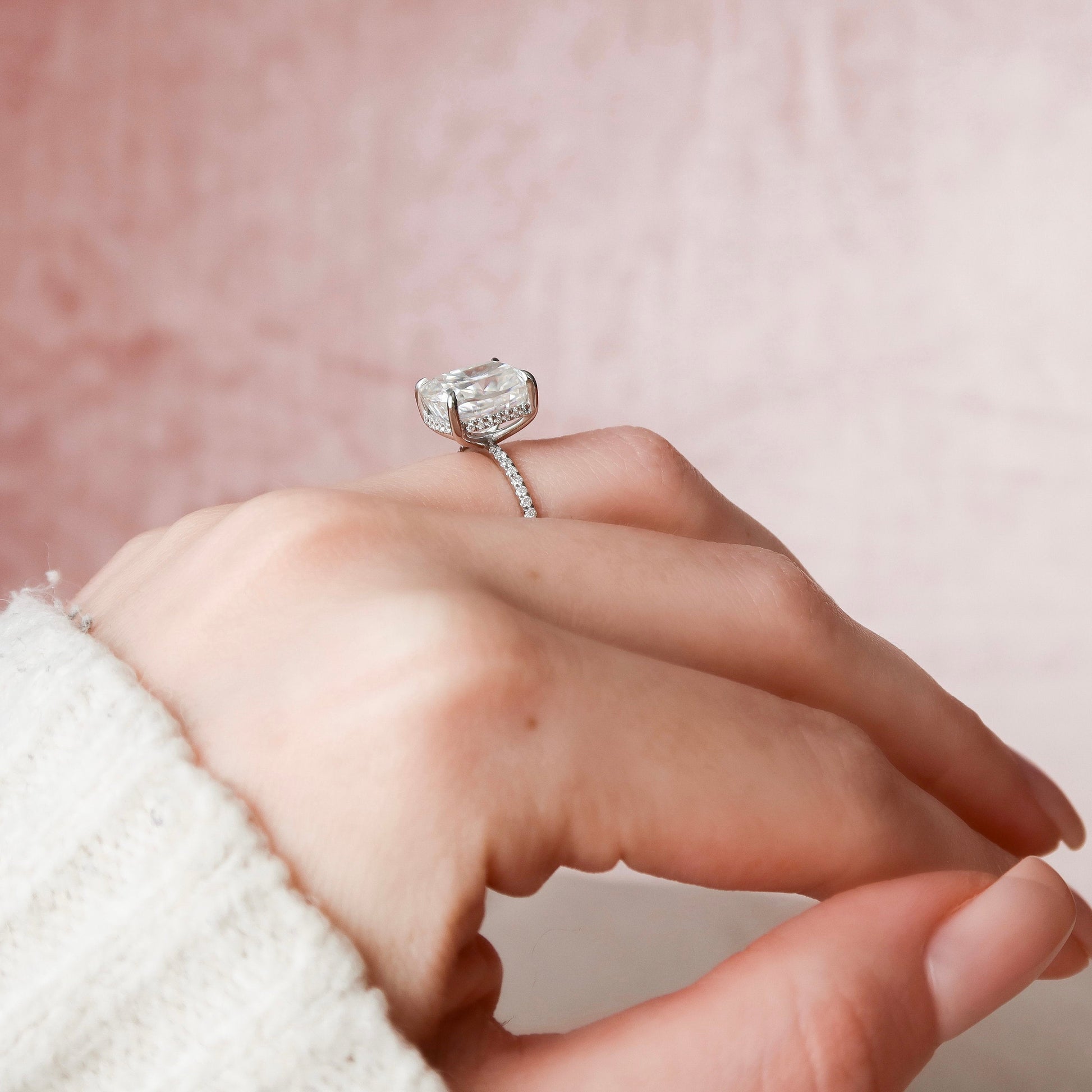 6.0CT Elongated Cushion Cut Moissanite Hidden Halo Engagement Ring