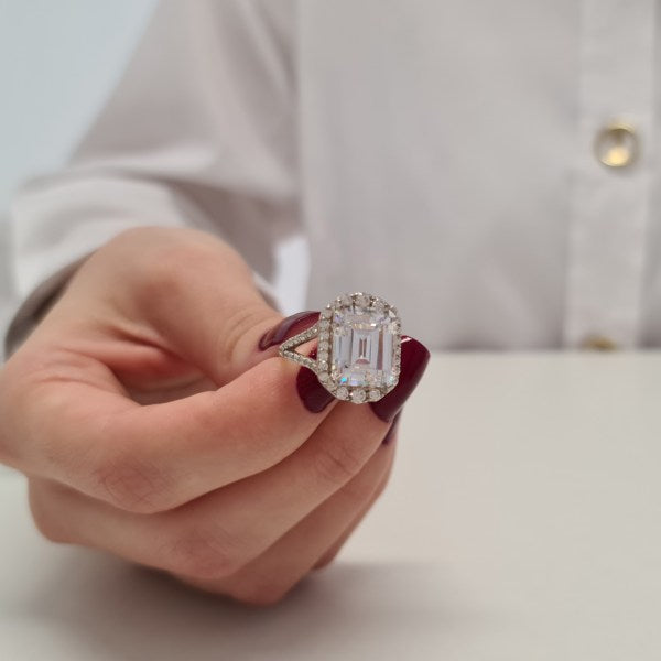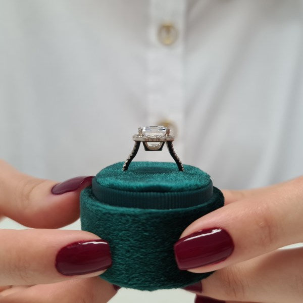 7.2CT Emerald Cut Diamond Halo Moissanite Engagement Ring