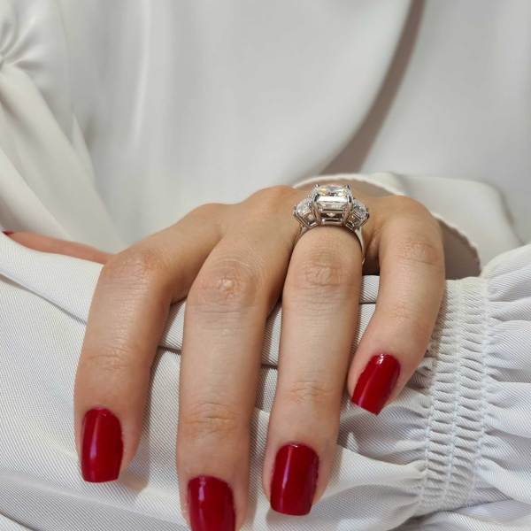7.2CT Radiant Diamond Three Stone Moissanite Engagement Ring
