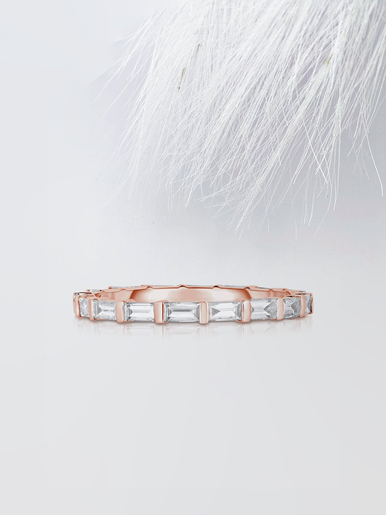 ✦ Elevate her elegance with our Baguette Cut Bar Eternity Diamond Wedding Band for Women. Crafted with precision. this band features a continuous row of sparkling baguette-cut diamonds securely held in sleek bar settings. The modern design adds a touch of sophistication to any ensemble. symbolizing the eternal nature of your love and commitment. Whether exchanged on your wedding day or presented as a cherished anniversary gift. this wedding band is destined to be treasured for a lifetime. symbolizing the enduring bond between you and your partner.