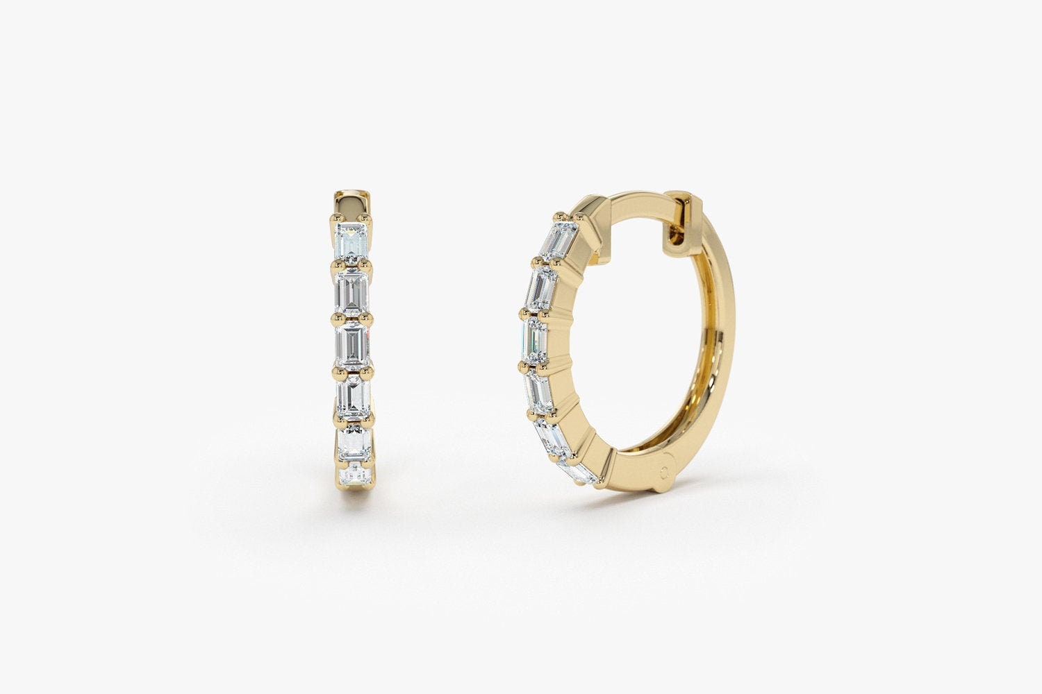Baguette Cut Diamond Moissanite Hoop Earring Gift for Women