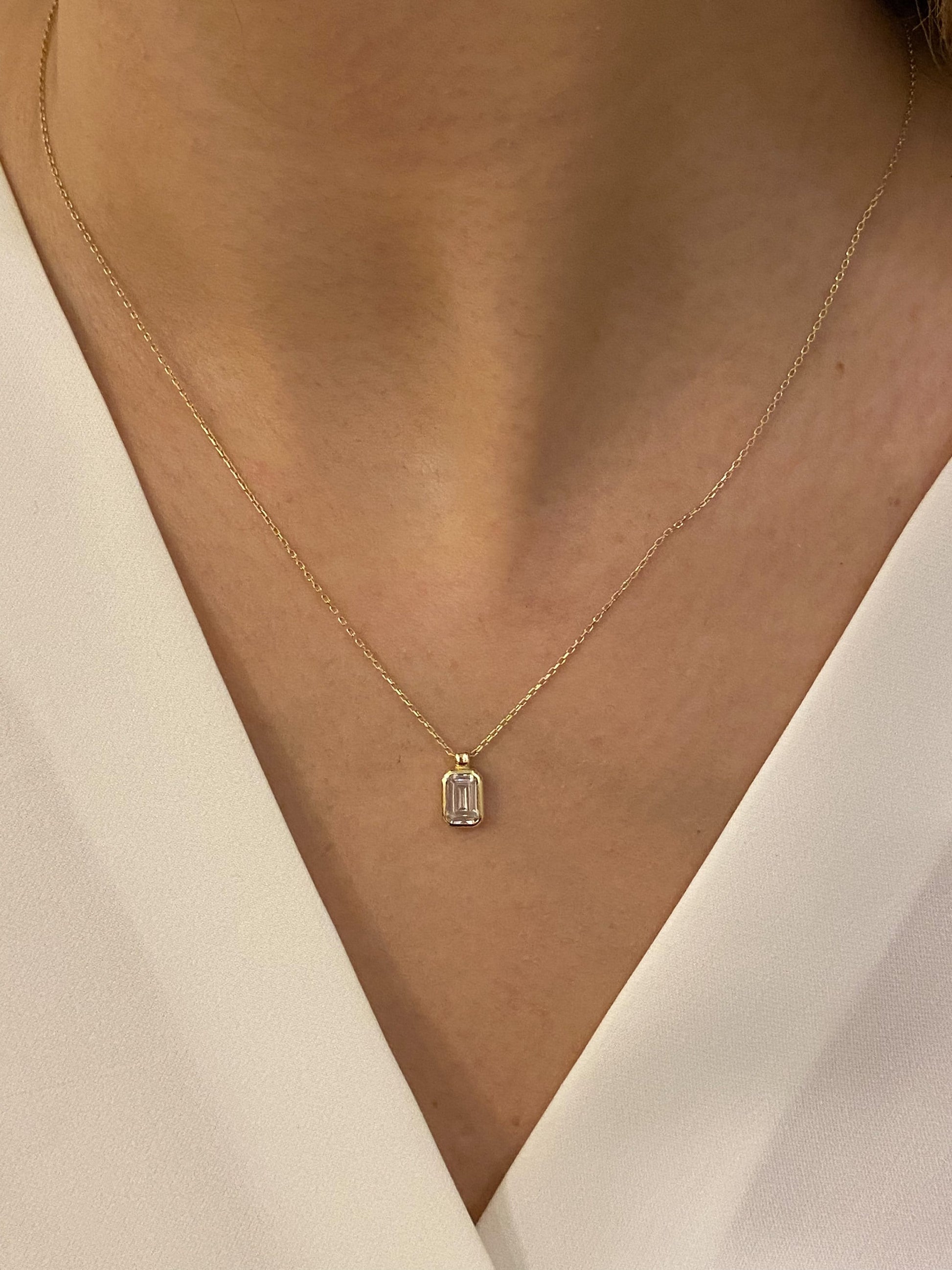 Bezel Set Baguette Cut Diamond Necklace for Women
