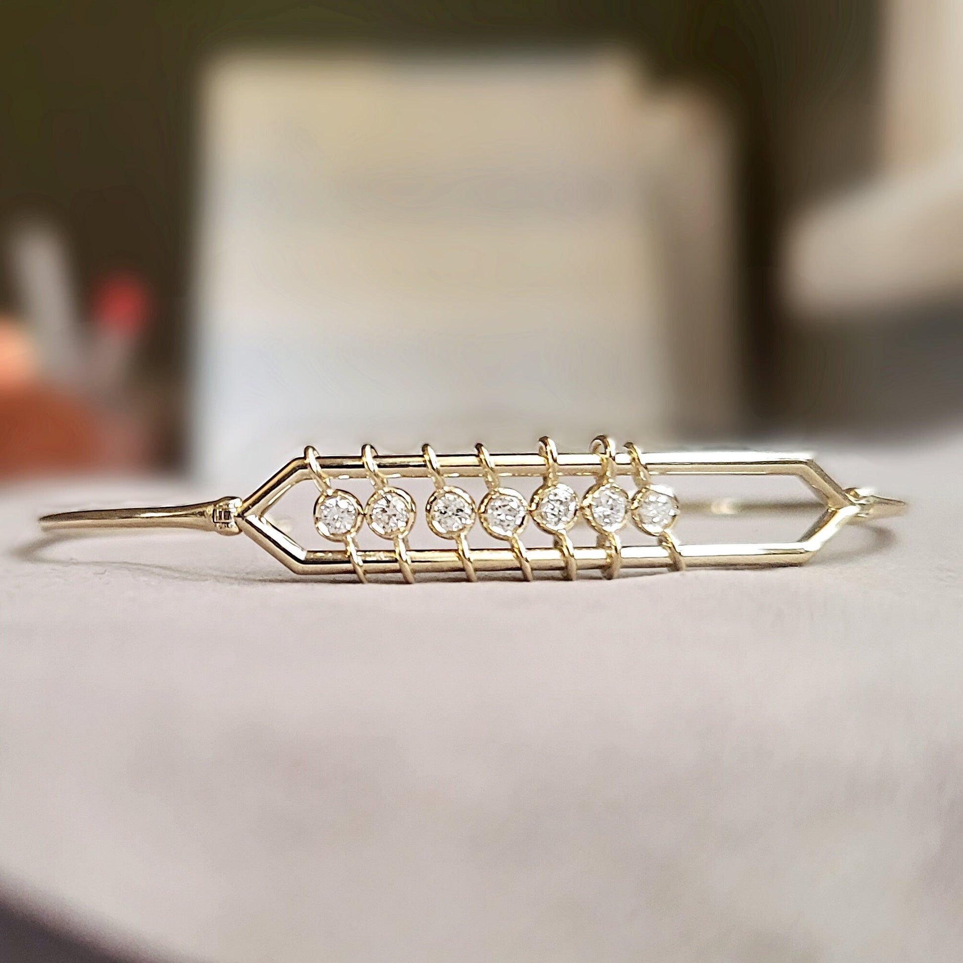 ✥ Discover the allure of our Bezel Set Diamond Unique Bangle Bracelet for Women. a statement of contemporary elegance. This bracelet features bezel-set diamonds that radiate a unique charm. set against a sleek bangle design crafted for both comfort and style. Perfect for elevating any outfit. it blends modern sophistication with timeless beauty. Crafted from high-quality materials for durability and lasting shine. it's ideal for daily wear or special occasions. A perfect gift choice. symbolizing grace and individuality. making it a cherished addition to any jewelry collection.