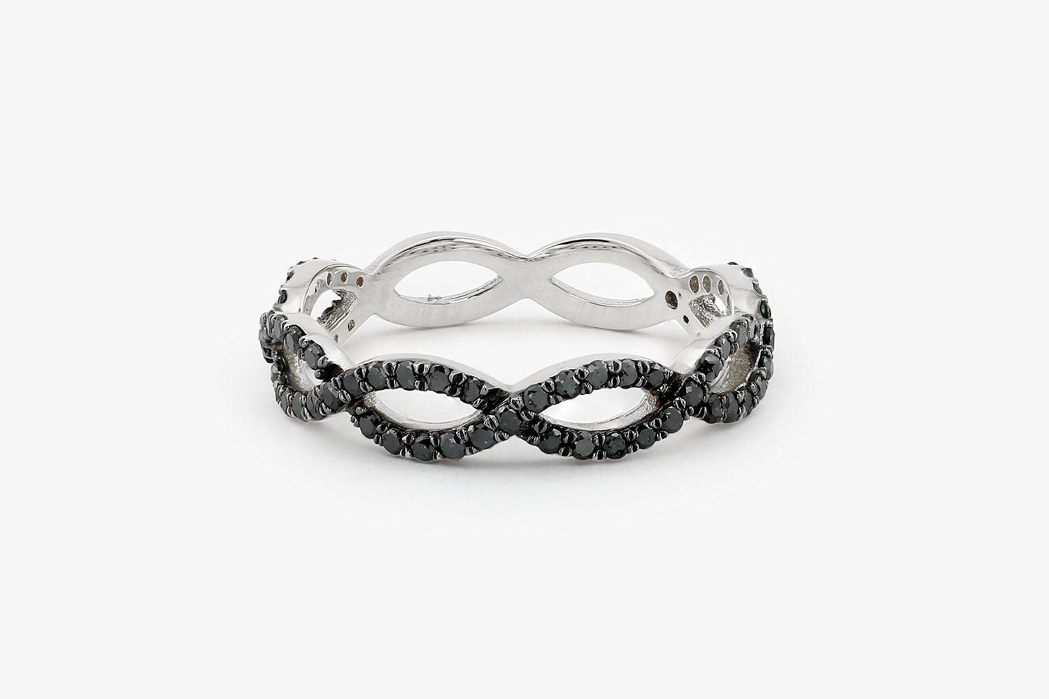 Black Round Cut Infinity Twist Diamond Band for Women
