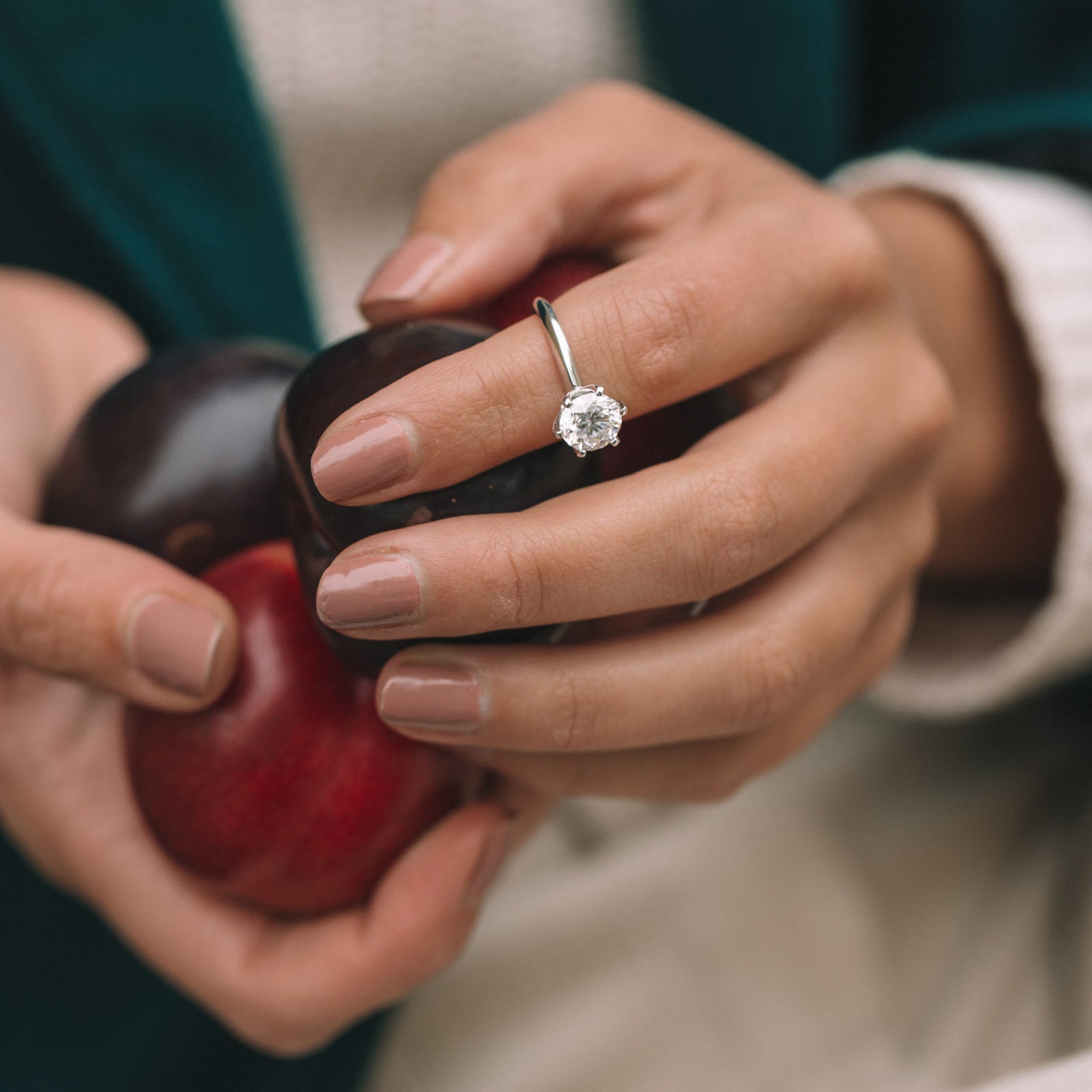 ✥ Celebrate your love with the timeless elegance of our 2 ct Round Cut Solitaire Moissanite Diamond Ring. a symbol of your deep commitment and classic style. This exquisite engagement ring features a brilliant 2 ct round-cut Moissanite center stone. meticulously cut to capture the essence of your love. The solitaire setting accentuates the stone's brilliance. making it the focal point of your enduring affection. Meticulously crafted for comfort and durability. the ring is a testament to a love that lasts as long as the Moissanite's sparkle. Its understated design and pure simplicity make it a perfect declaration of your affection. promising a love that remains as brilliant and enduring as the diamond itself. Embrace the promise of a radiant future with a ring that beautifully encapsulates the essence of your commitment.
