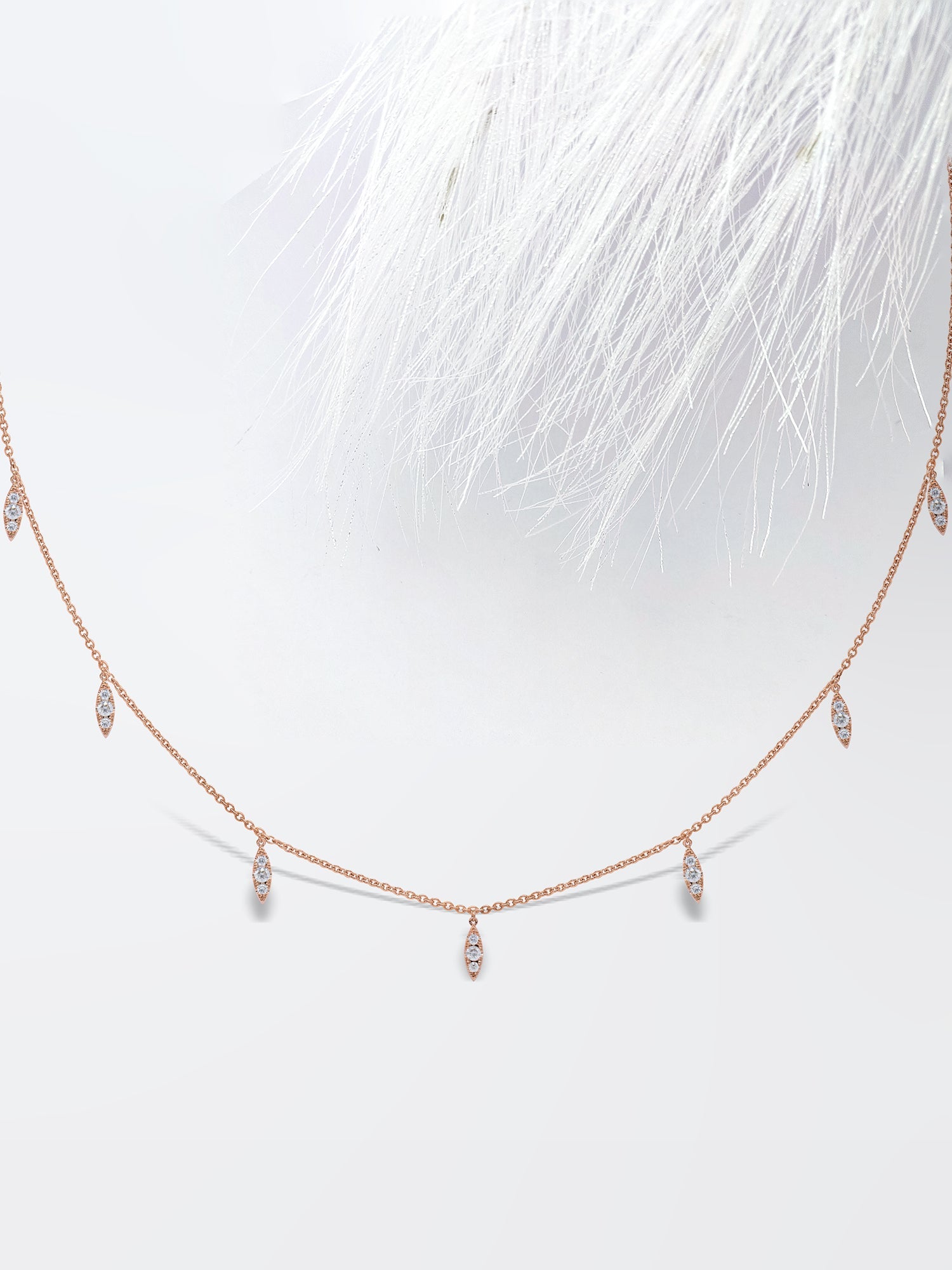✥ Introducing our Dangling Diamond Moissanite Leaf Drop Necklace For Women. a graceful and nature-inspired piece that embodies elegance and charm. This exquisite necklace features delicate leaf-shaped drops adorned with dazzling diamond moissanite stones. meticulously set to create a mesmerizing sparkle. The intricate design of the dangling leaves adds movement and sophistication to the necklace. capturing the beauty of nature in every detail. Whether worn for a special occasion or to elevate everyday attire. this necklace exudes effortless grace and style. Crafted with precision and attention to detail. it is sure to become a cherished addition to any jewelry collection. symbolizing timeless beauty and refined taste. Elevate your look with the Dangling Diamond Moissanite Leaf Drop Necklace and embrace the enchanting allure of nature.