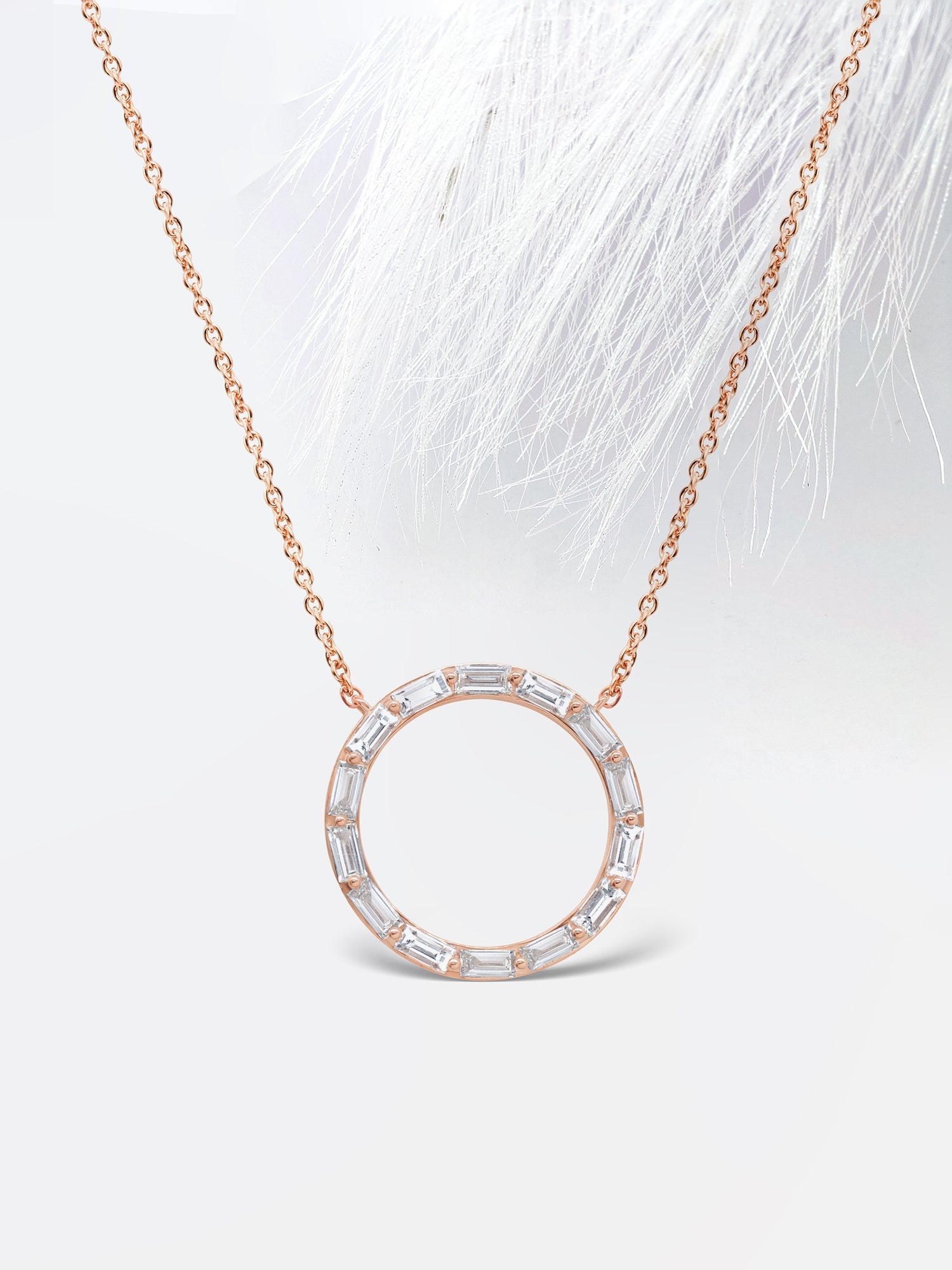 Diamond Moissanite Baguette Circle Necklace (Large) For Women