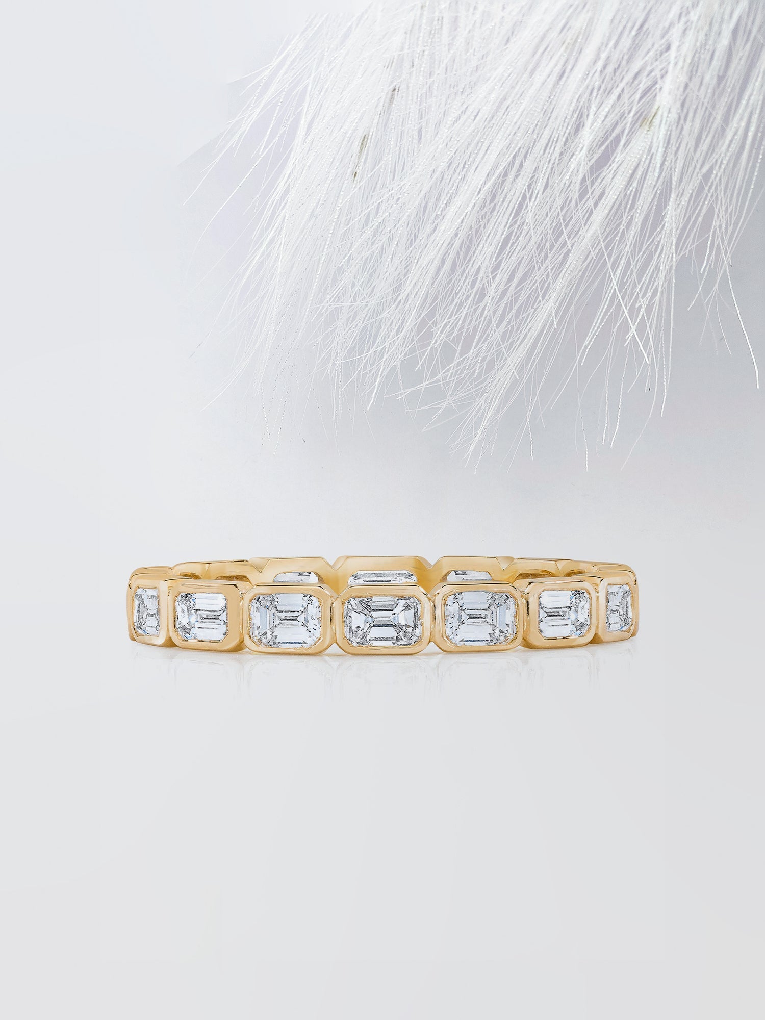 Emerald Cut Bezel Diamond Wedding Band For Women