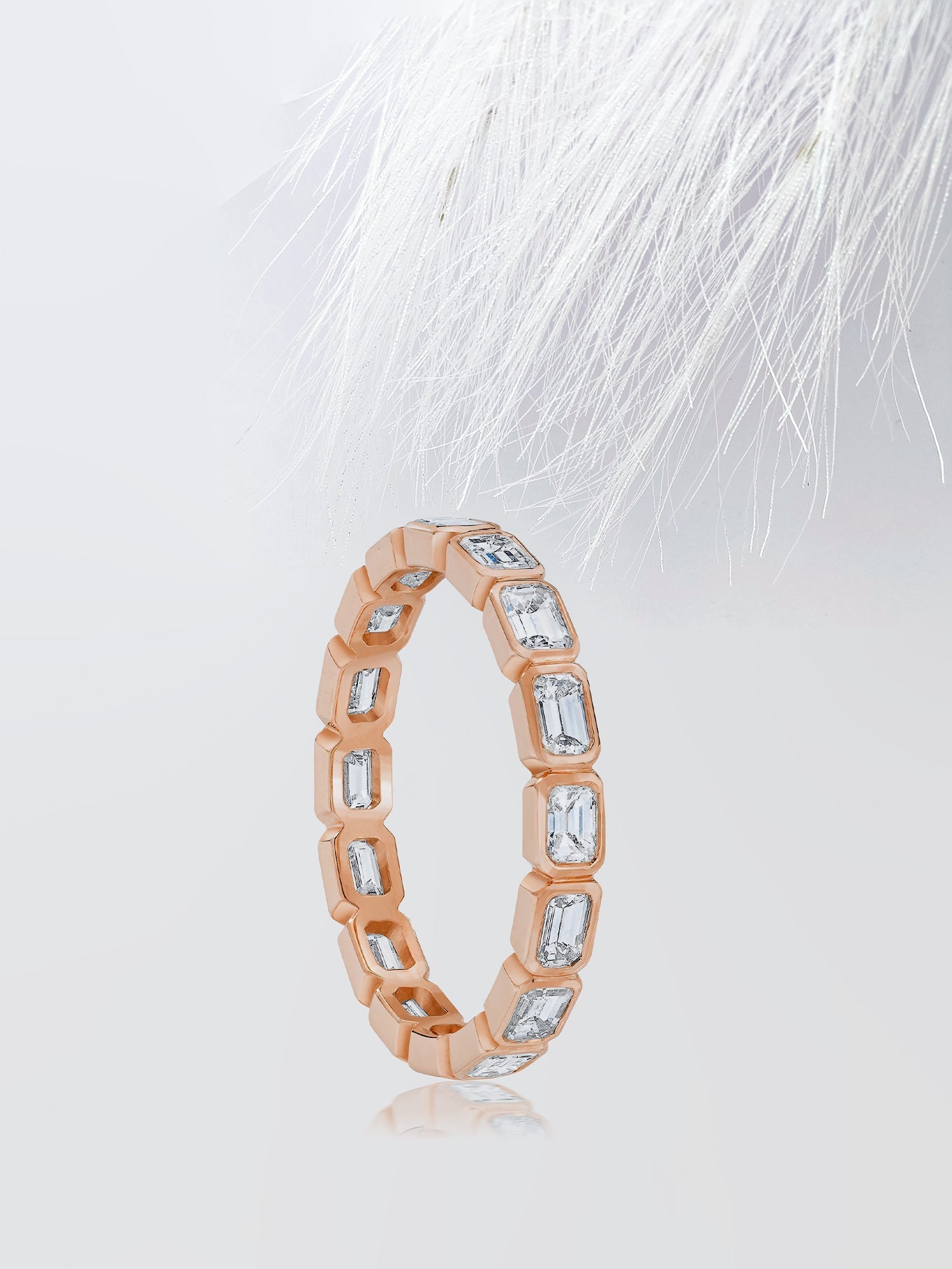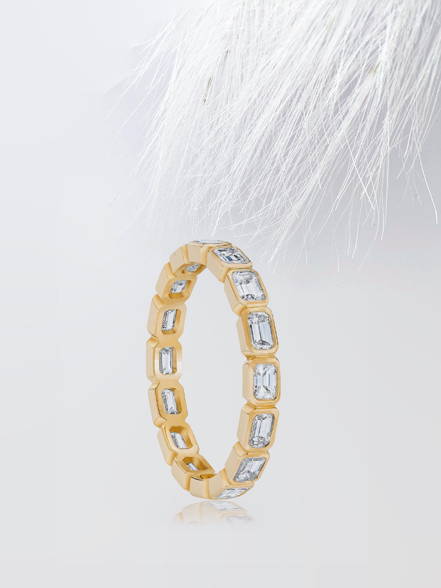 ✦ Elevate her elegance with our Emerald Cut Bezel Diamond Wedding Band for Women. Meticulously crafted. this band features a continuous row of dazzling emerald-cut diamonds securely nestled within sleek bezel settings. The timeless elegance of the emerald-cut diamonds is enhanced by the minimalist bezel settings. offering both style and security. Whether exchanged on your wedding day or presented as a cherished anniversary gift. this wedding band is a beautiful symbol of your enduring love and commitment. destined to be treasured for a lifetime.