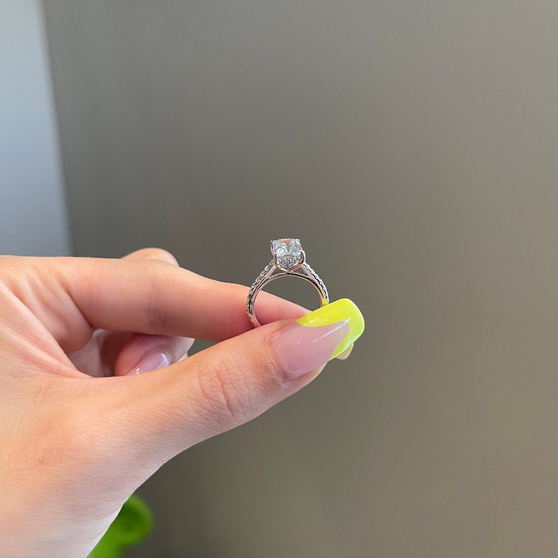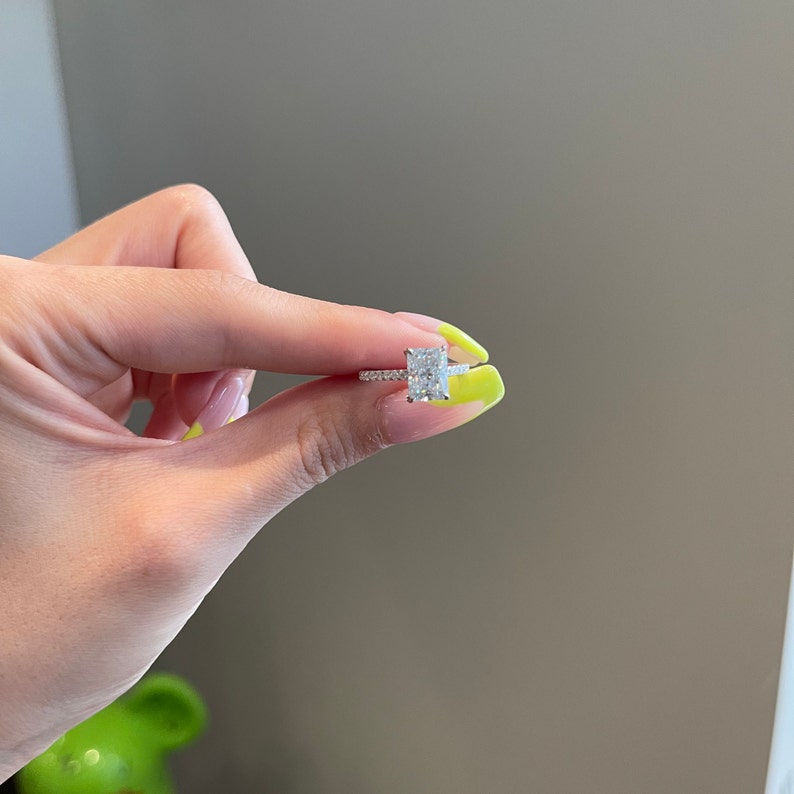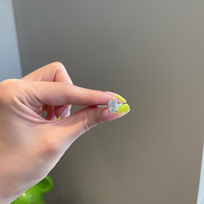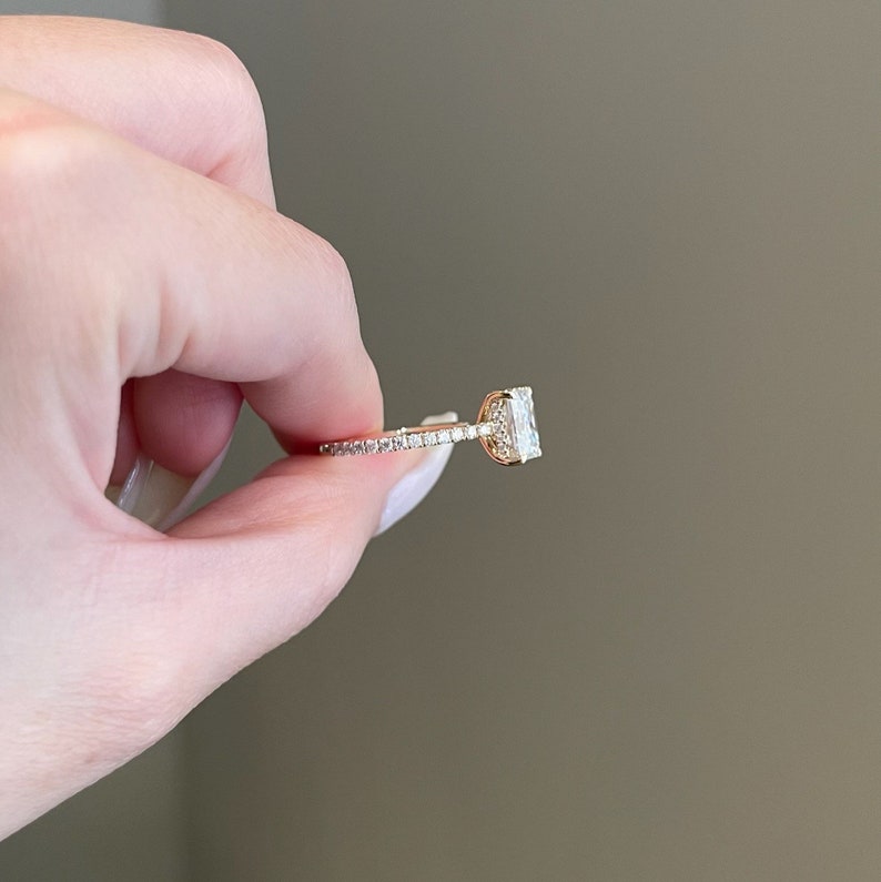 Emerald Cut Diamond Pave Moissanite Engagement Ring