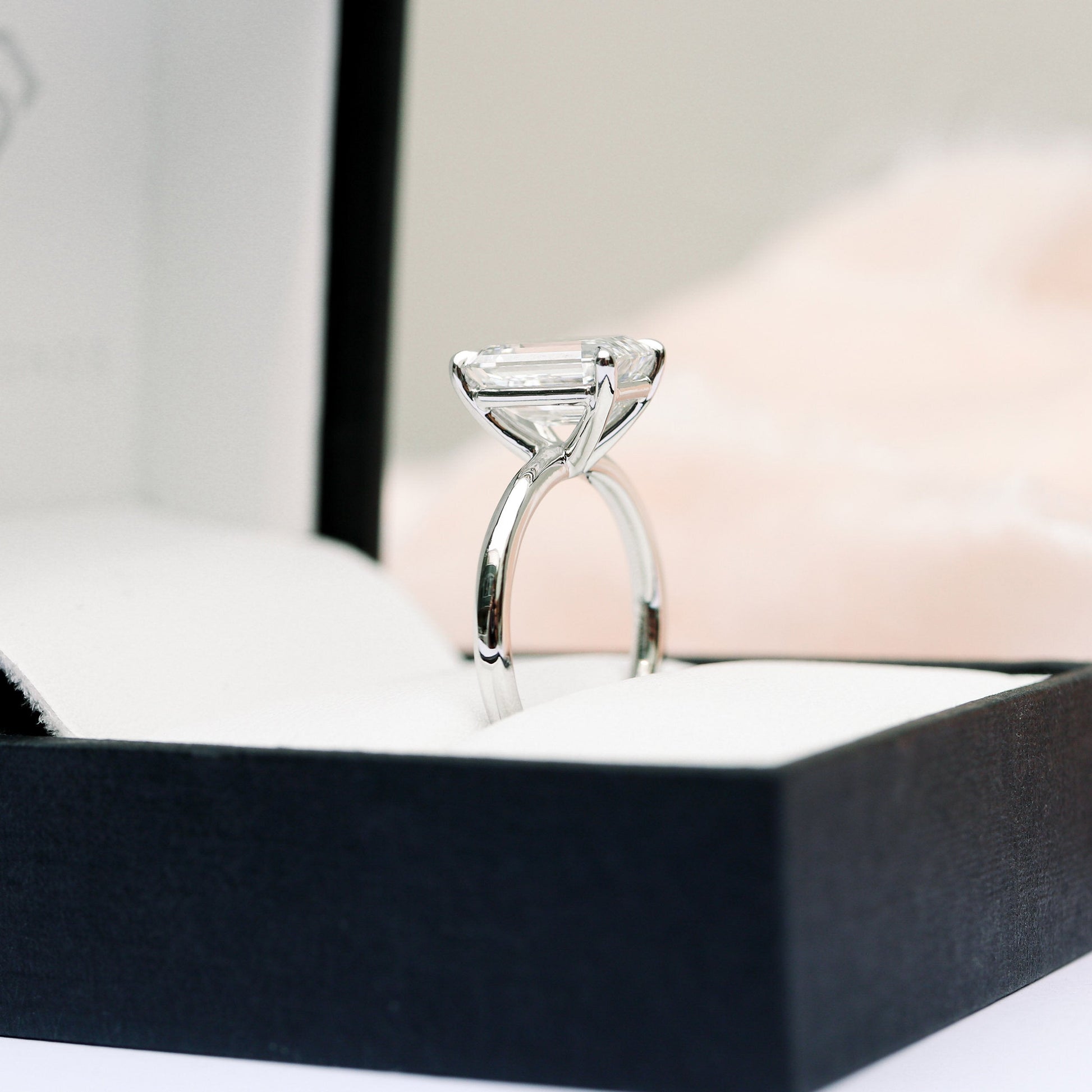 ✥ Elevate your love story with our 2.75ct Emerald Cut Diamond 14K Gold Engagement Ring. a symbol of enduring elegance and commitment. This stunning engagement ring boasts a magnificent emerald-cut diamond. known for its captivating clarity and timeless beauty. The 14K gold band perfectly complements the diamond's radiance. creating a harmonious blend of sophistication and luxury. The classic design with prong settings allows the diamond to shine brilliantly. capturing the essence of your love with every gleam. Whether you're starting a new chapter or reaffirming your lifelong bond. this ring is a testament to your enduring love. a future filled with brilliance and sparkle. Choose this exquisite piece to mark the beginning of your forever journey. and let its beauty mirror the beauty of your love story.