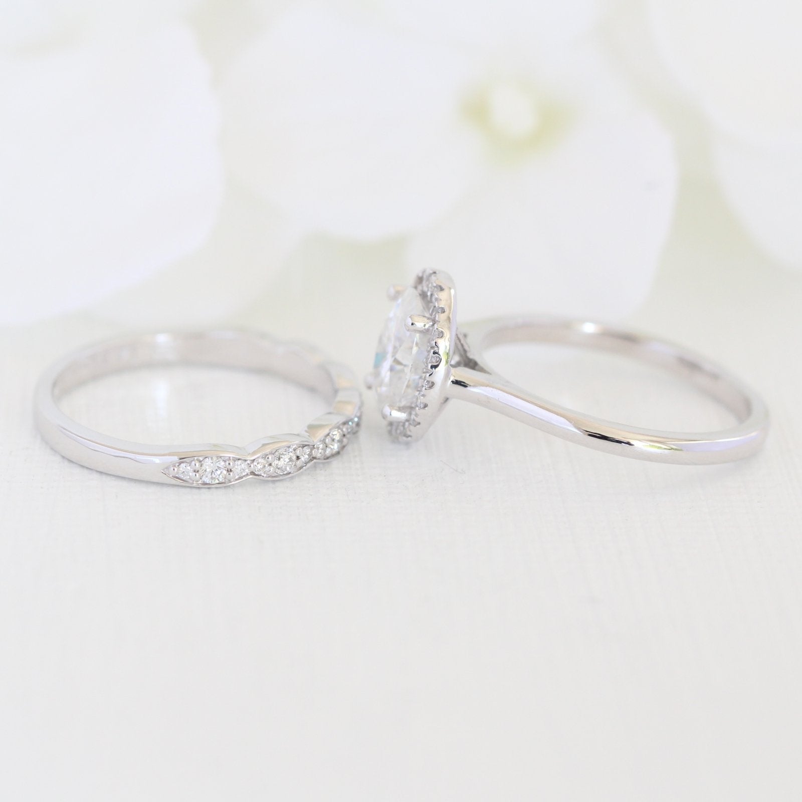 ✥ Elevate your love story with our Oval Cut Halo Moissanite Ring with Scalloped Diamond Band Ring. an exquisite bridal set that beautifully symbolizes your unique and enduring bond. The engagement ring features a dazzling oval-cut Moissanite center stone. encircled by a radiant halo of smaller Moissanite gems. casting an enchanting glow that mirrors the depth of your affection. The intricately designed scalloped diamond band adds a touch of timeless elegance. enhancing the brilliance of the ring. The matching wedding band seamlessly complements this ensemble. creating a harmonious duo that signifies the past. present. and future of your love. Crafted with precision and artistry. this set is a promise of a radiant future filled with love. style. and lasting beauty.