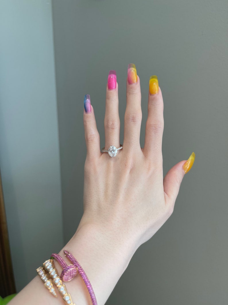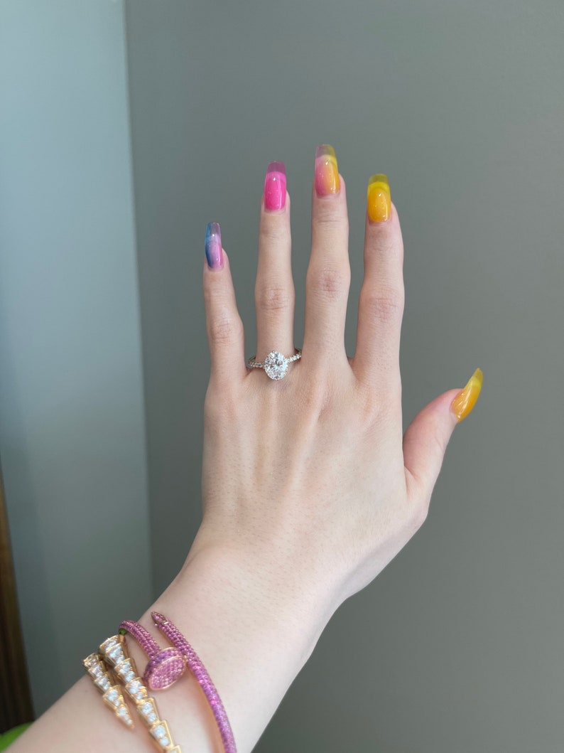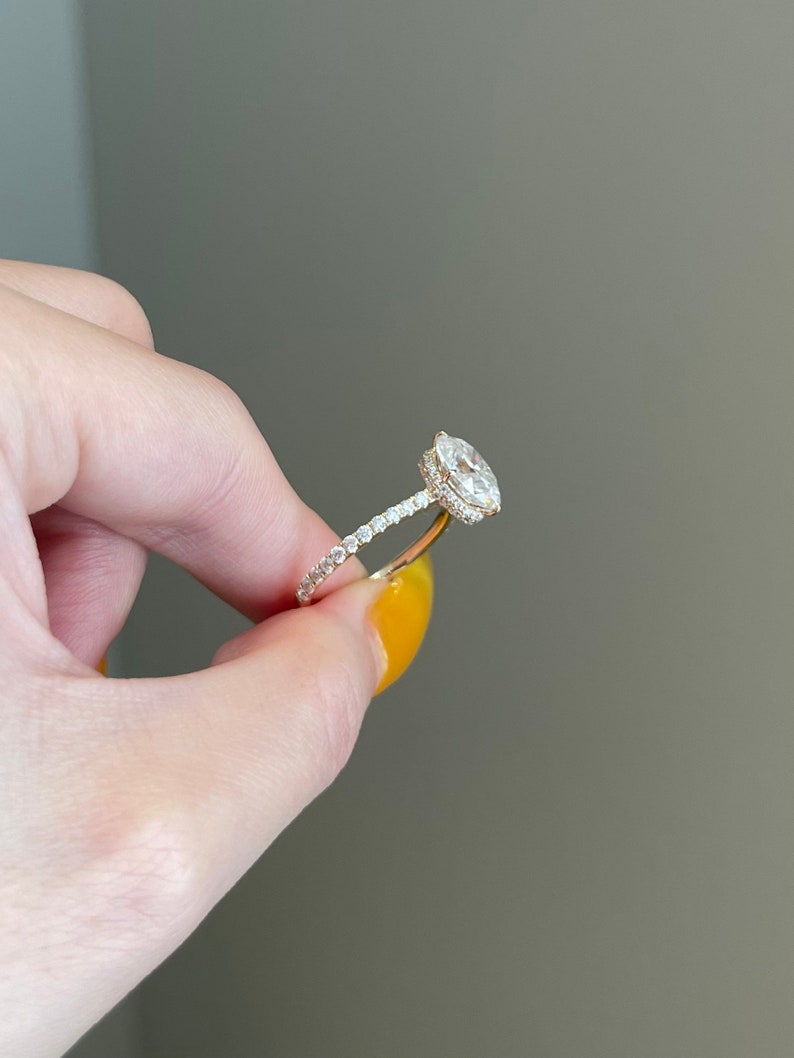 Oval Cut Hidden Halo Moissanite Diamond Engagement Ring