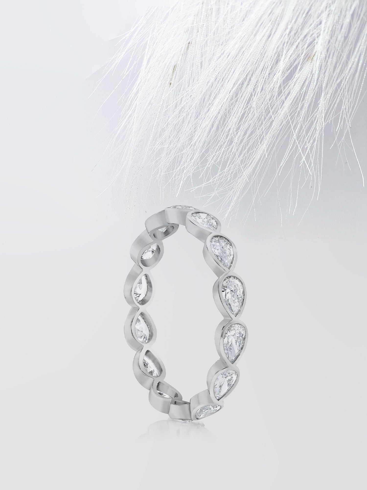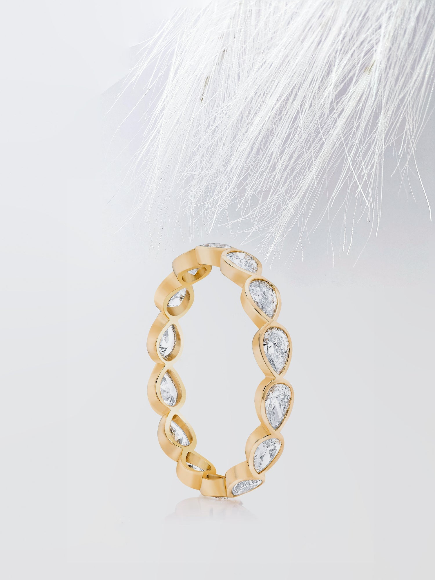 ✦ Adorn her hand with timeless elegance using our Pear Cut Bezel Diamond Wedding Band for Women. Meticulously crafted. this band features a continuous row of exquisite pear-cut diamonds securely nestled within sleek bezel settings. The minimalist design of the bezel settings enhances the beauty of the pear-cut diamonds. creating a sophisticated and understated look. Whether exchanged on your wedding day or presented as a cherished anniversary gift. this wedding band is a beautiful symbol of your enduring love and commitment. destined to be treasured for a lifetime.