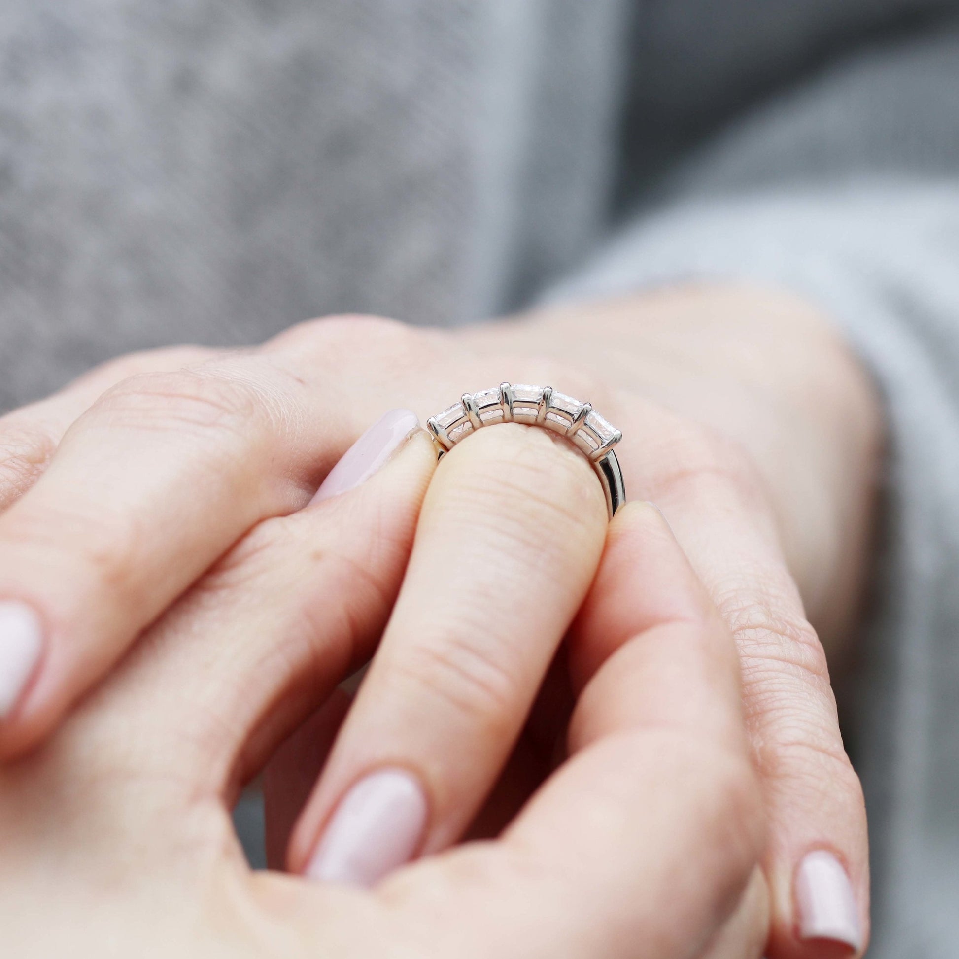 Emerald Cut Five Stone Moissanite Wedding Band