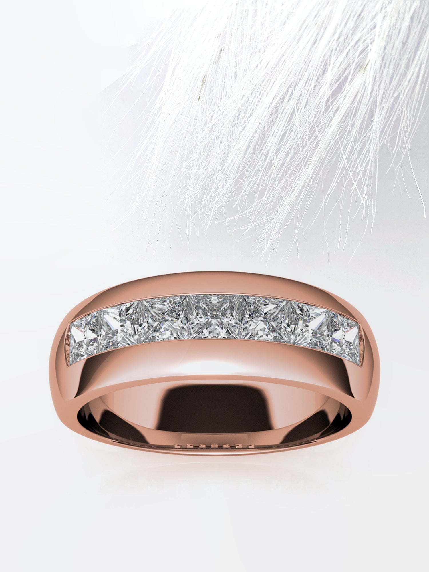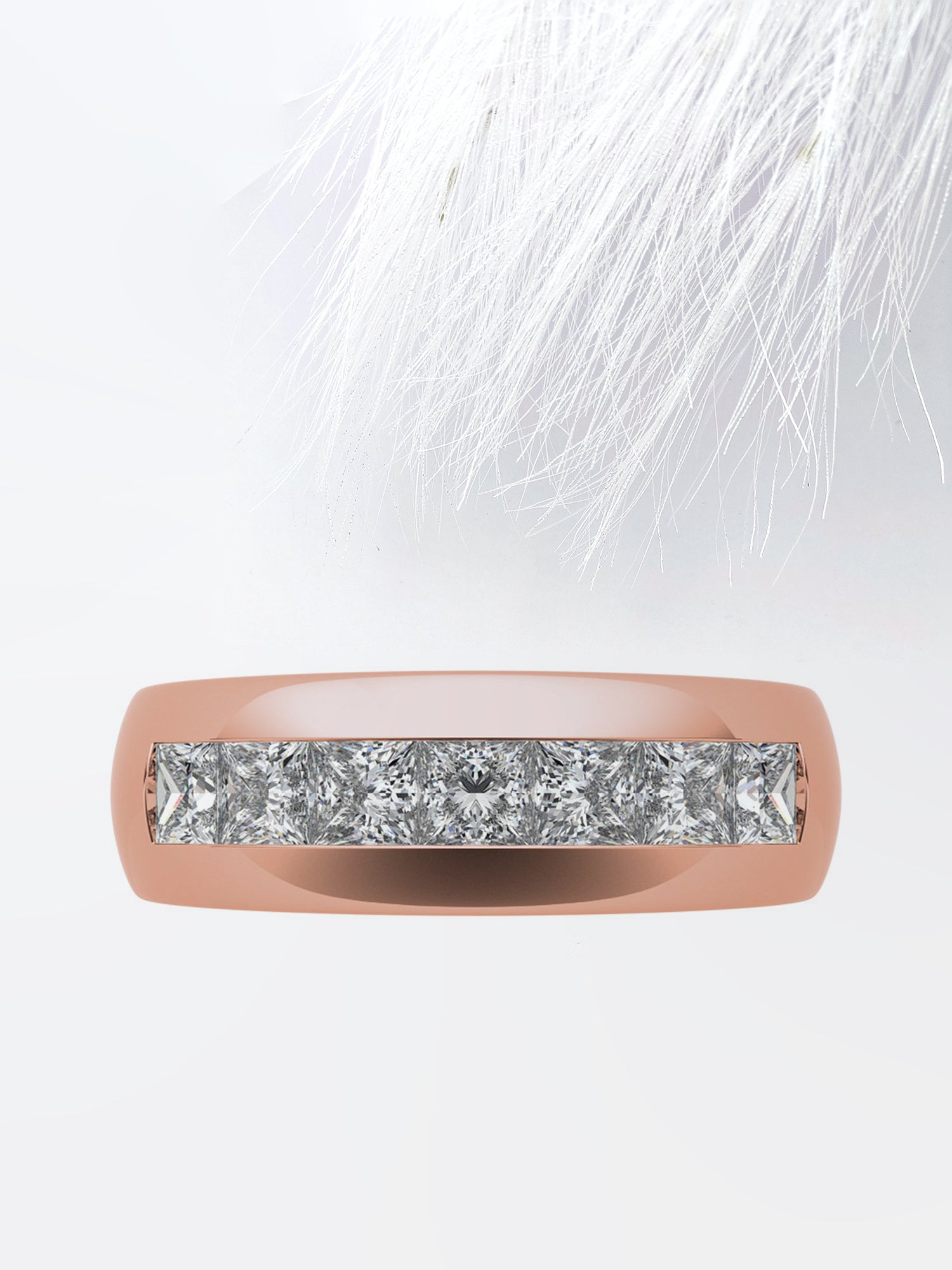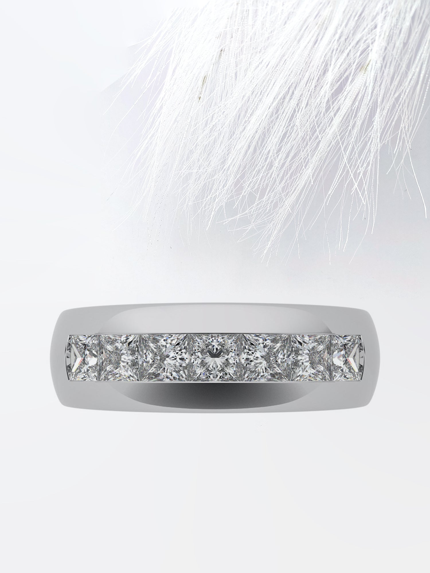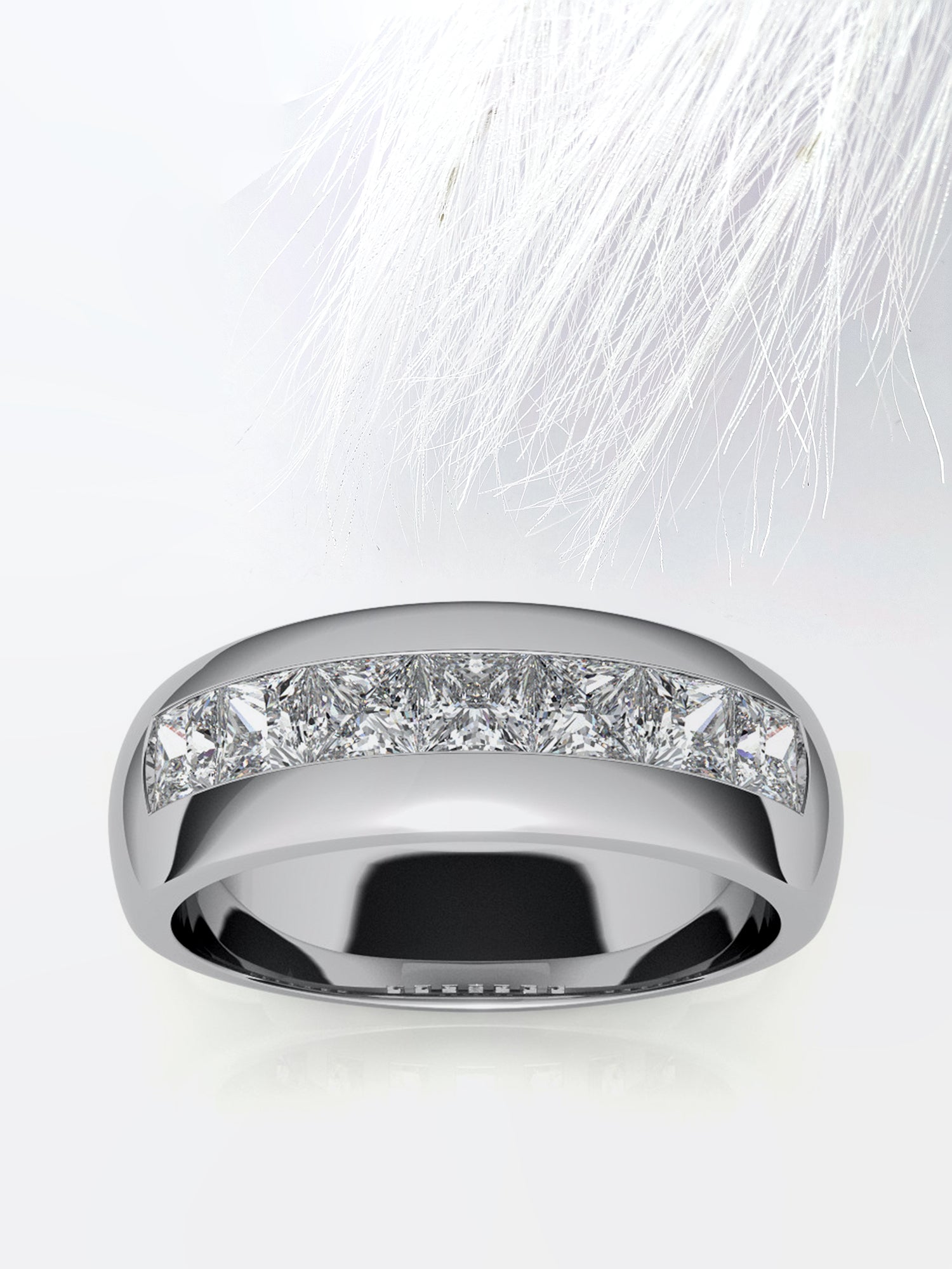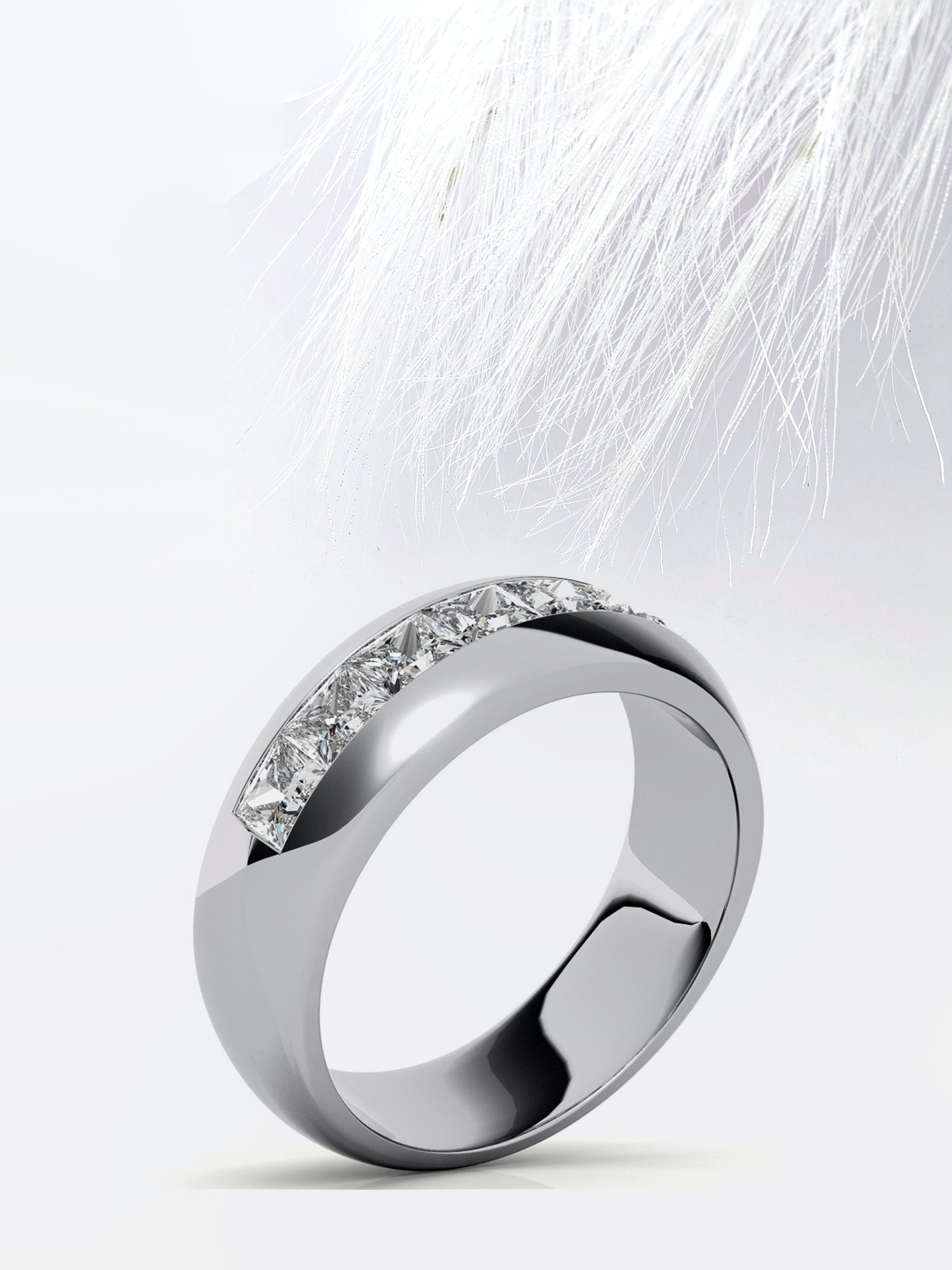 ✥ Introducing our elegant Princess Cut Channel Moissanite Men's Diamond Wedding Band. a refined symbol of everlasting love and sophistication. Crafted with precision. this exquisite wedding band features princess-cut moissanite stones set in a sleek channel setting. creating a seamless and stylish design. Each moissanite stone sparkles with brilliance. adding a touch of luxury to the band. Made with eco-friendly moissanite gemstones. this band offers exceptional quality and sustainability without compromising on style. Its classic yet modern design makes it the perfect choice for the discerning groom who seeks understated elegance on his wedding day. Celebrate your eternal commitment with this extraordinary moissanite wedding band. destined to be treasured for a lifetime of memories.