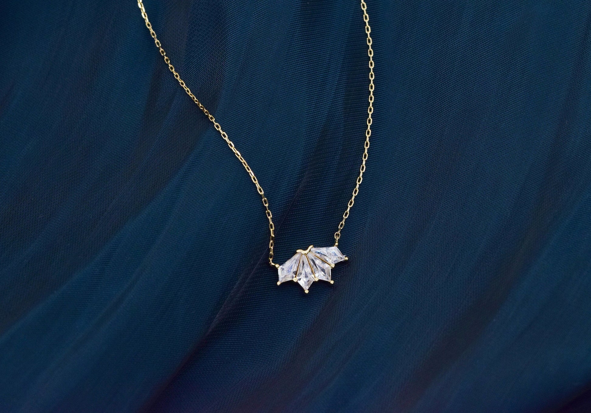 Rhombus Cut Diamond Flower Pendant Necklace Gift for Women
