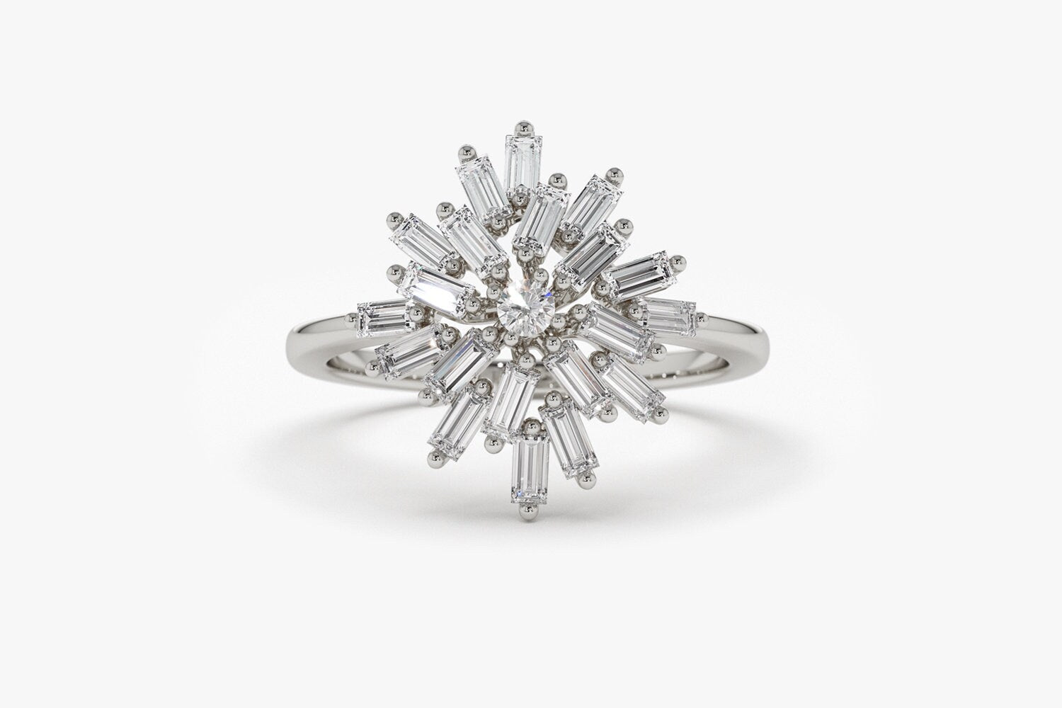 Round & Baguette Cut Diamond Cluster Wedding Ring for Her