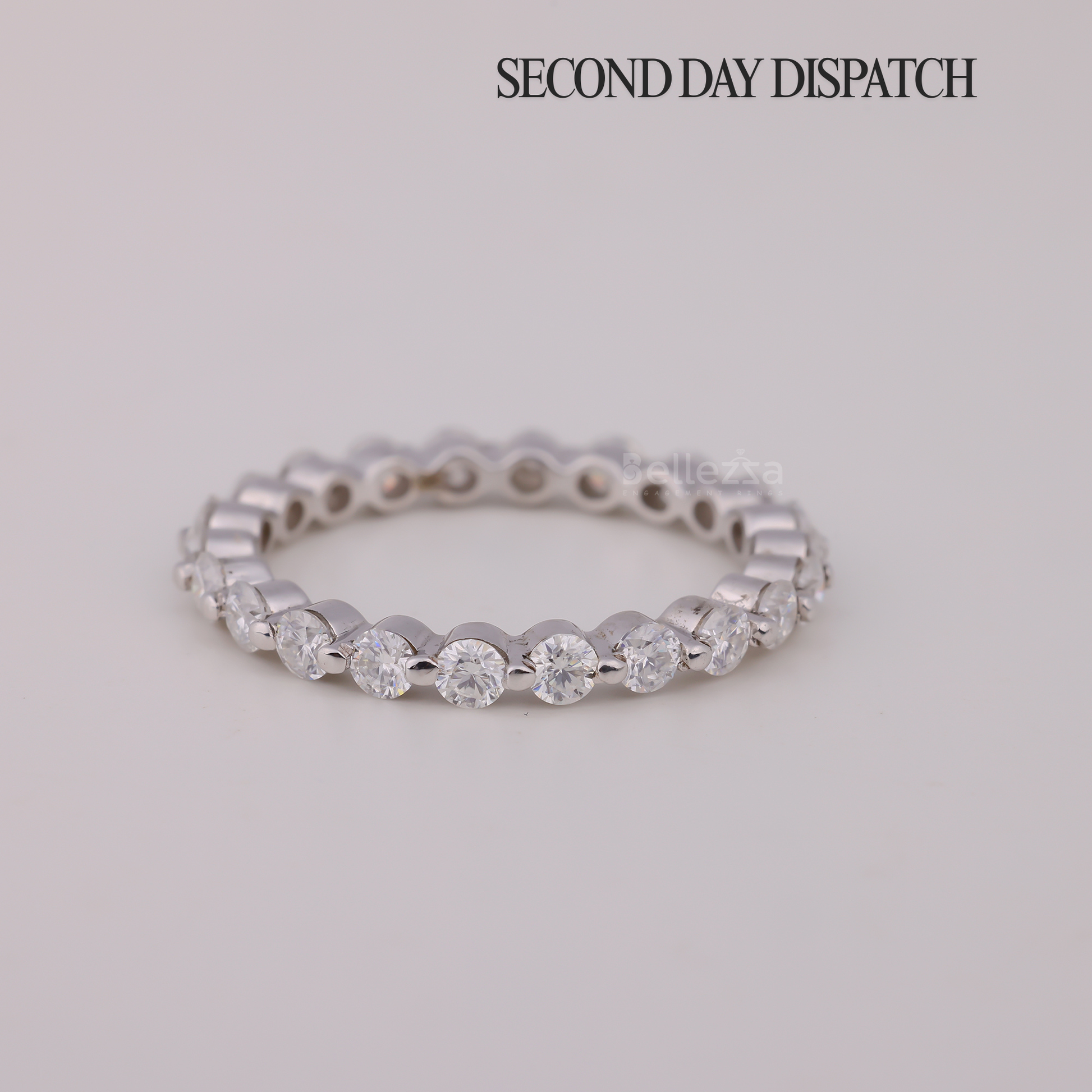 Round Brilliant Bubble Prong Moissanite Wedding Band - Ready to Ship