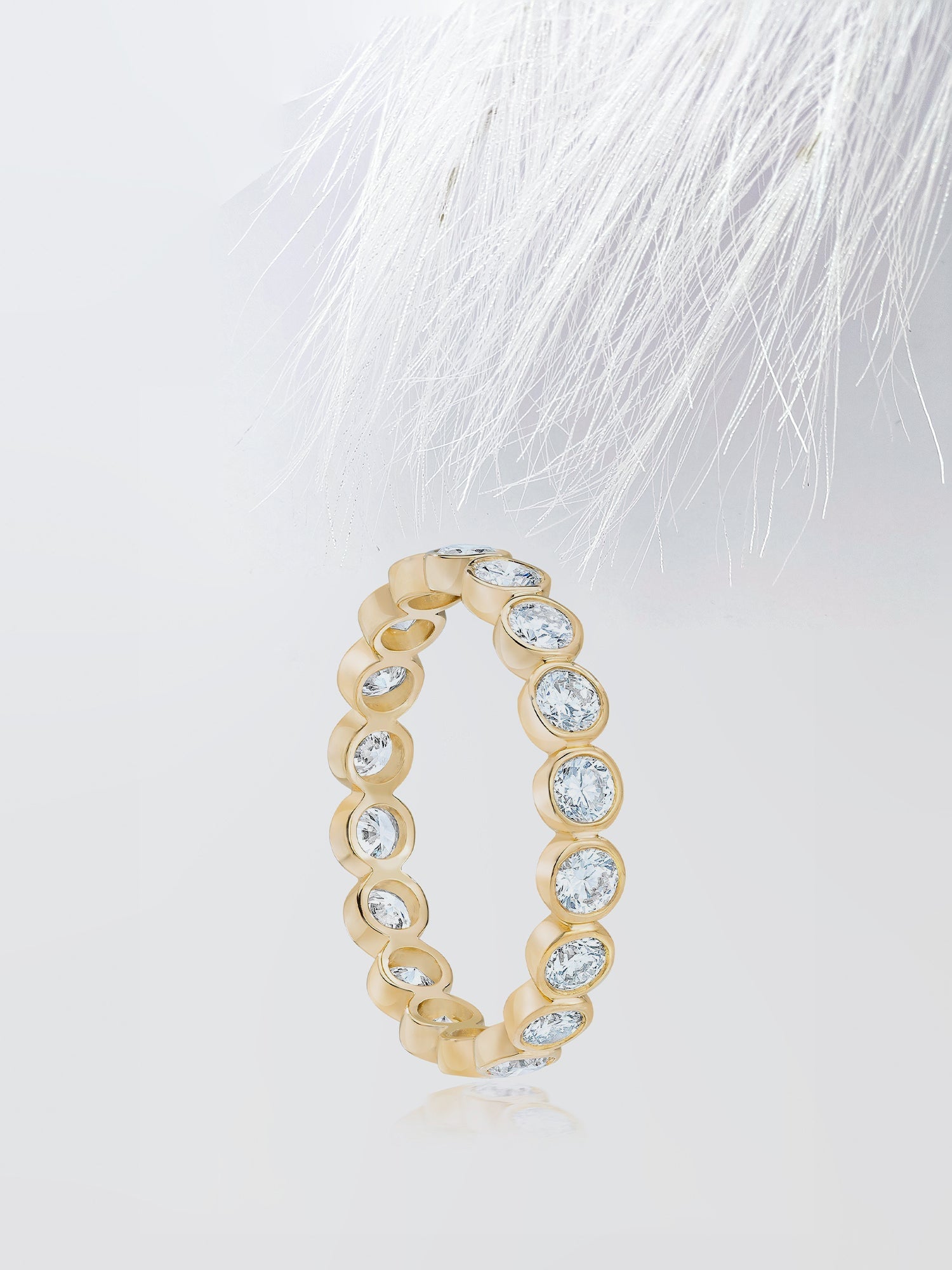 ✦ Elevate her elegance with our Round Cut Bezel Diamond Wedding Band for Women. Meticulously crafted. this band features a continuous row of sparkling round-cut diamonds securely nestled within sleek bezel settings. The minimalist design of the bezel settings enhances the beauty of the round-cut diamonds. creating a sophisticated and understated look. Whether exchanged on your wedding day or presented as a cherished anniversary gift. this wedding band is a timeless symbol of your enduring love and commitment. destined to be treasured for a lifetime.