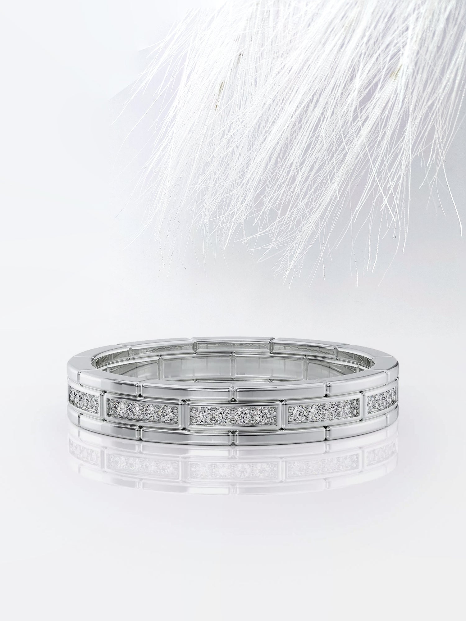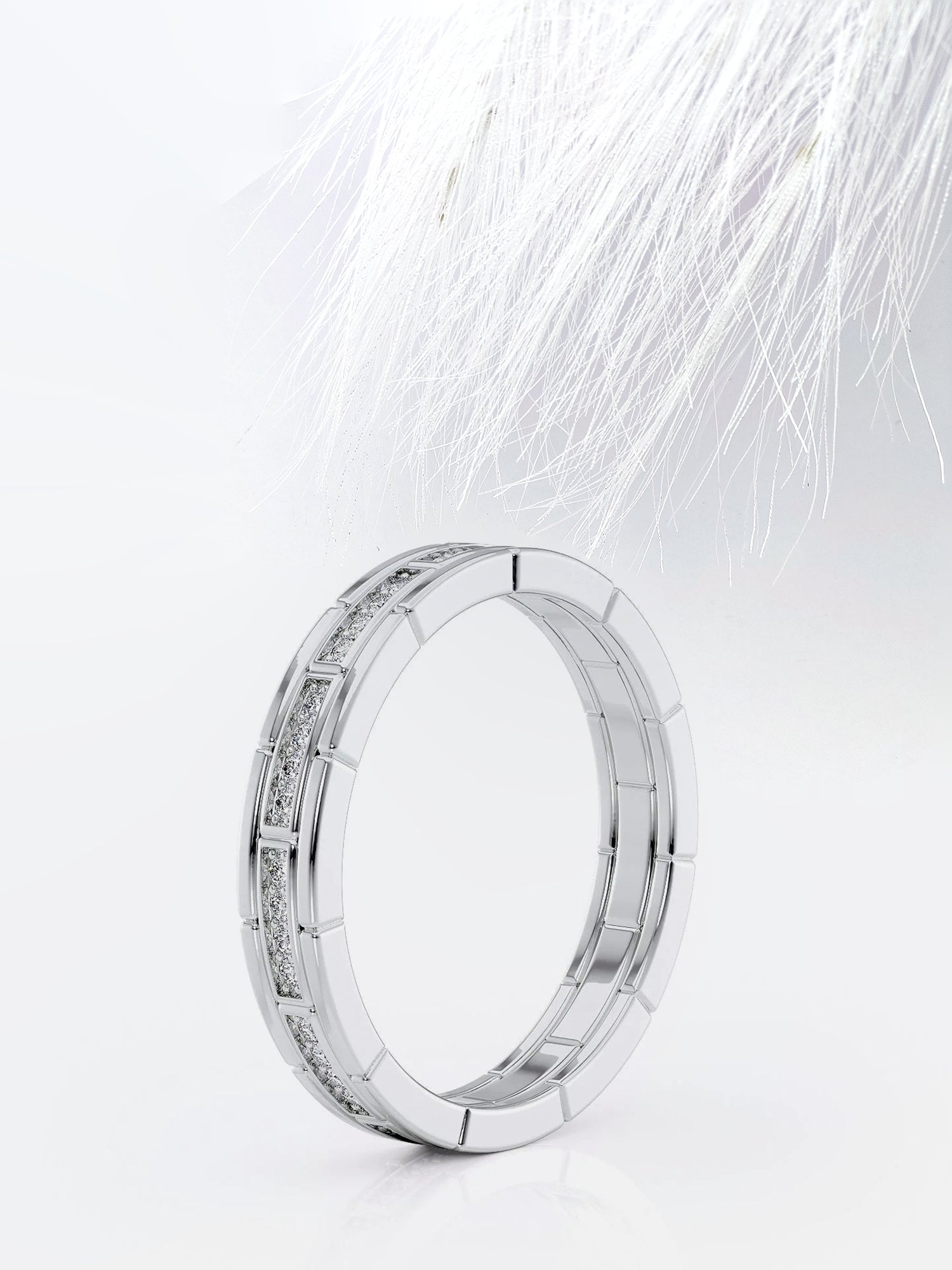 ✥ Introducing our Round Cut Channel Moissanite Men's Diamond Wedding Band. a perfect fusion of timeless elegance and contemporary style. Crafted with precision. this band features brilliant Moissanite stones in a classic round cut. meticulously channel-set along the band for a sleek and sophisticated look. Ethically sourced and expertly designed. this ring epitomizes enduring love and conscientious luxury. Whether exchanged as a symbol of commitment or worn as a fashion statement. this wedding band radiates unmatched brilliance and charm. making it the perfect choice for the modern groom who values both sophistication and sustainability in his jewelry.