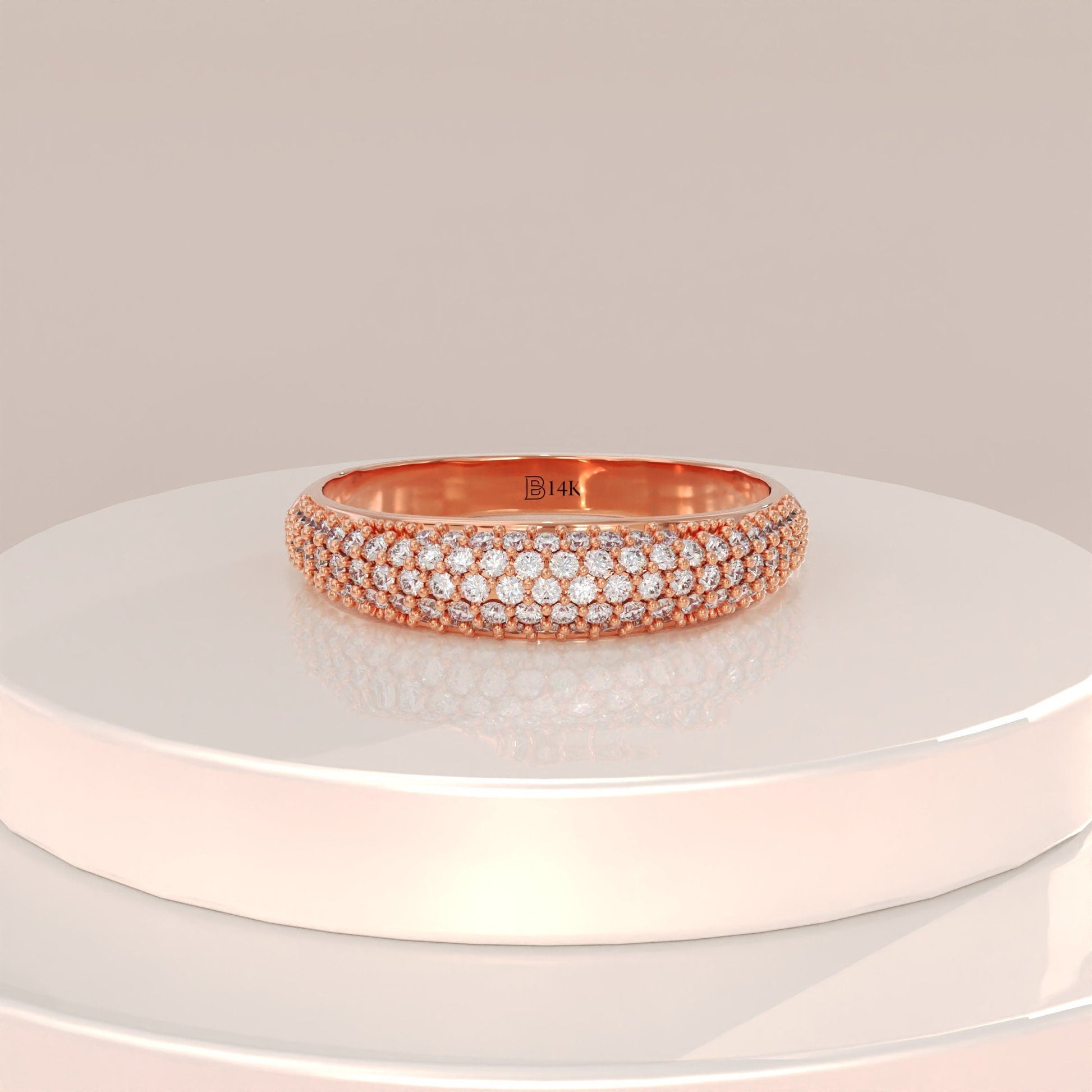 Round Cut Diamond Dome Gold Ring Gift for Women