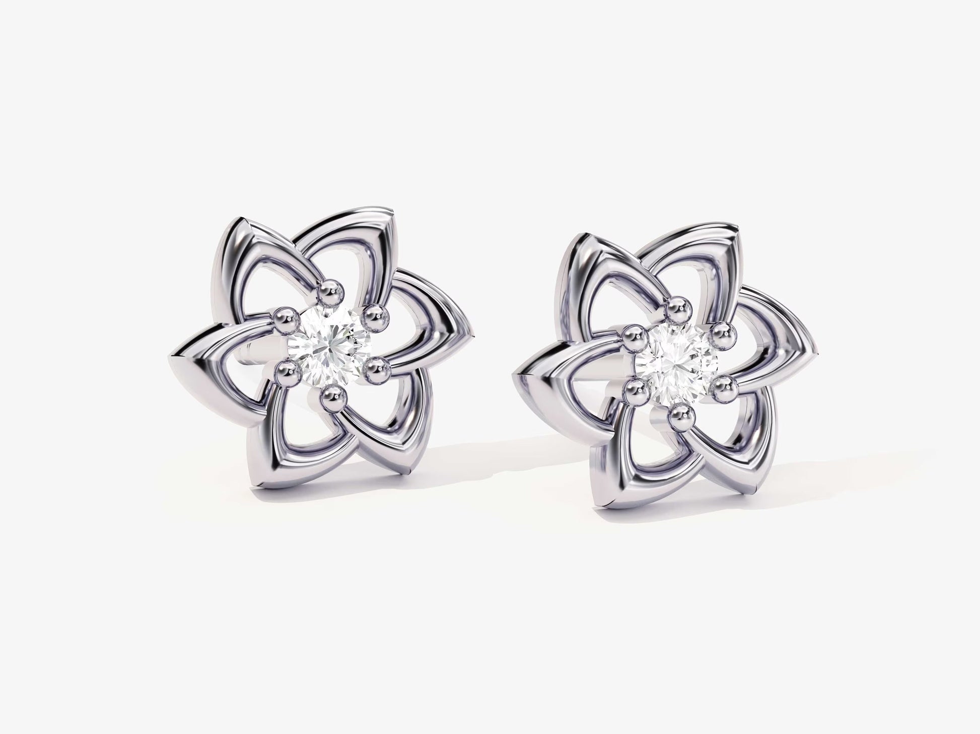 Round Cut Diamond Floral Studs Earrings for Halloween Gift