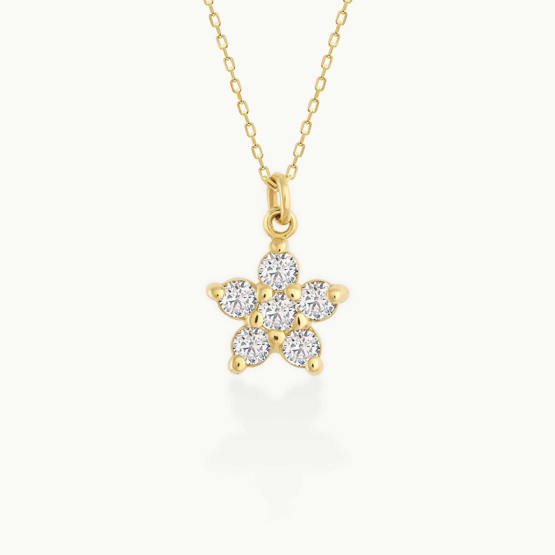 Round Cut Diamond Flower Necklace 14K Gold Ring for Her