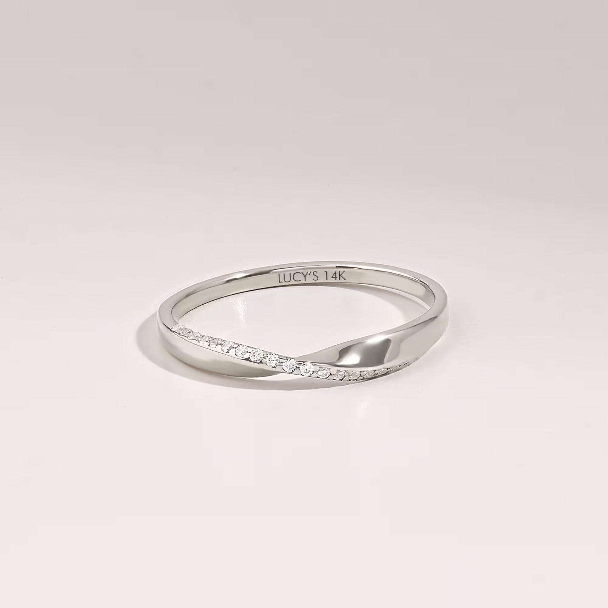 ✥ This round cut diamond Mobius wedding twist band for women. which combines contemporary style with classic finesse. is a stunning option for Christmas presents. This band. which has a distinctive Mobius twist pattern. is set with brilliant round cut diamonds that elegantly wrap around the finger to represent unending love and dedication. Exquisitely crafted using premium materials. it provides a unique and fashionable choice for commemorating a momentous occasion. This diamond twist ring will make her holiday season special. whether you're looking for a magnificent piece of jewelry to honor a big milestone or a memorable Christmas gift.