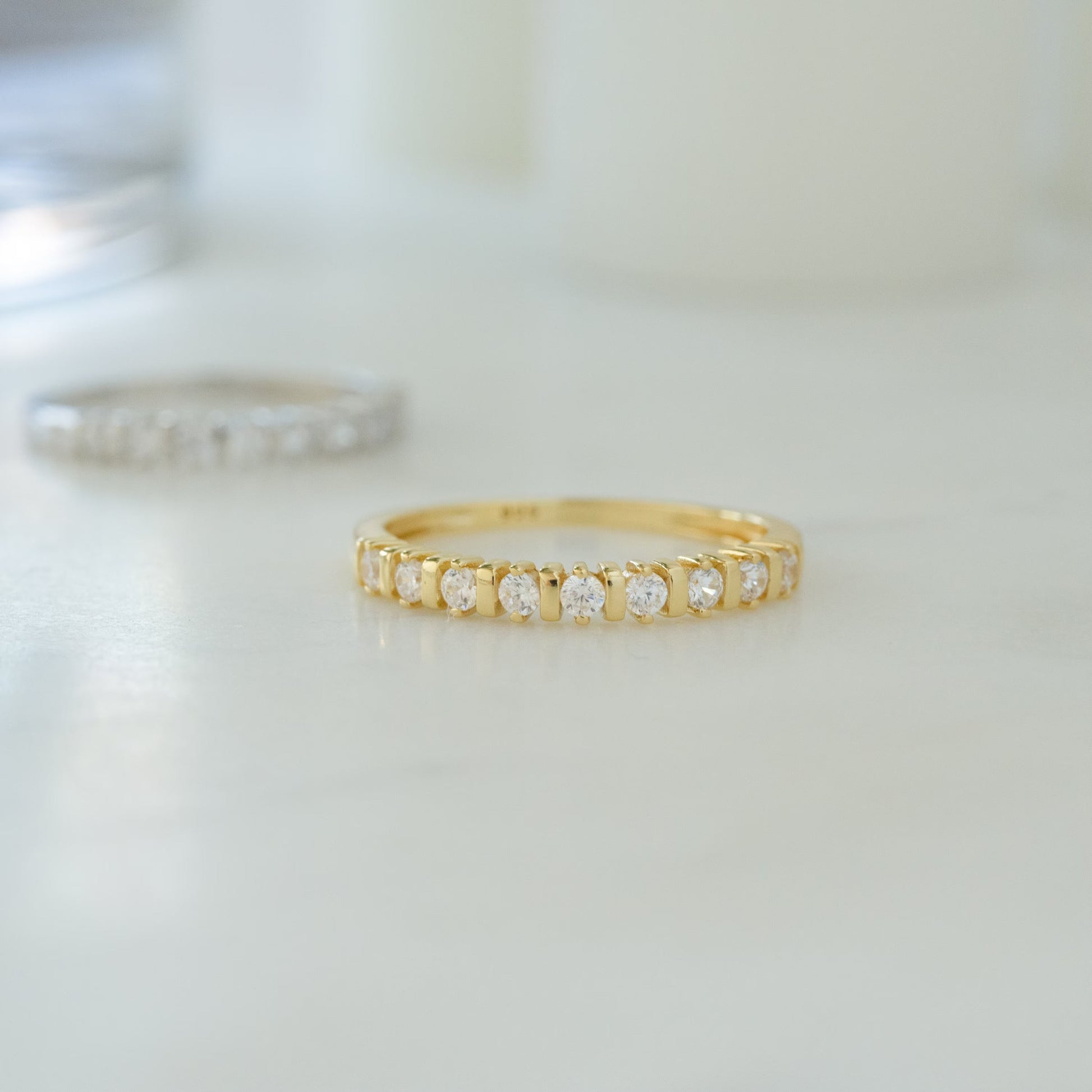 Round Cut Diamond Unique Half Eternity Stacking Ring for Her
