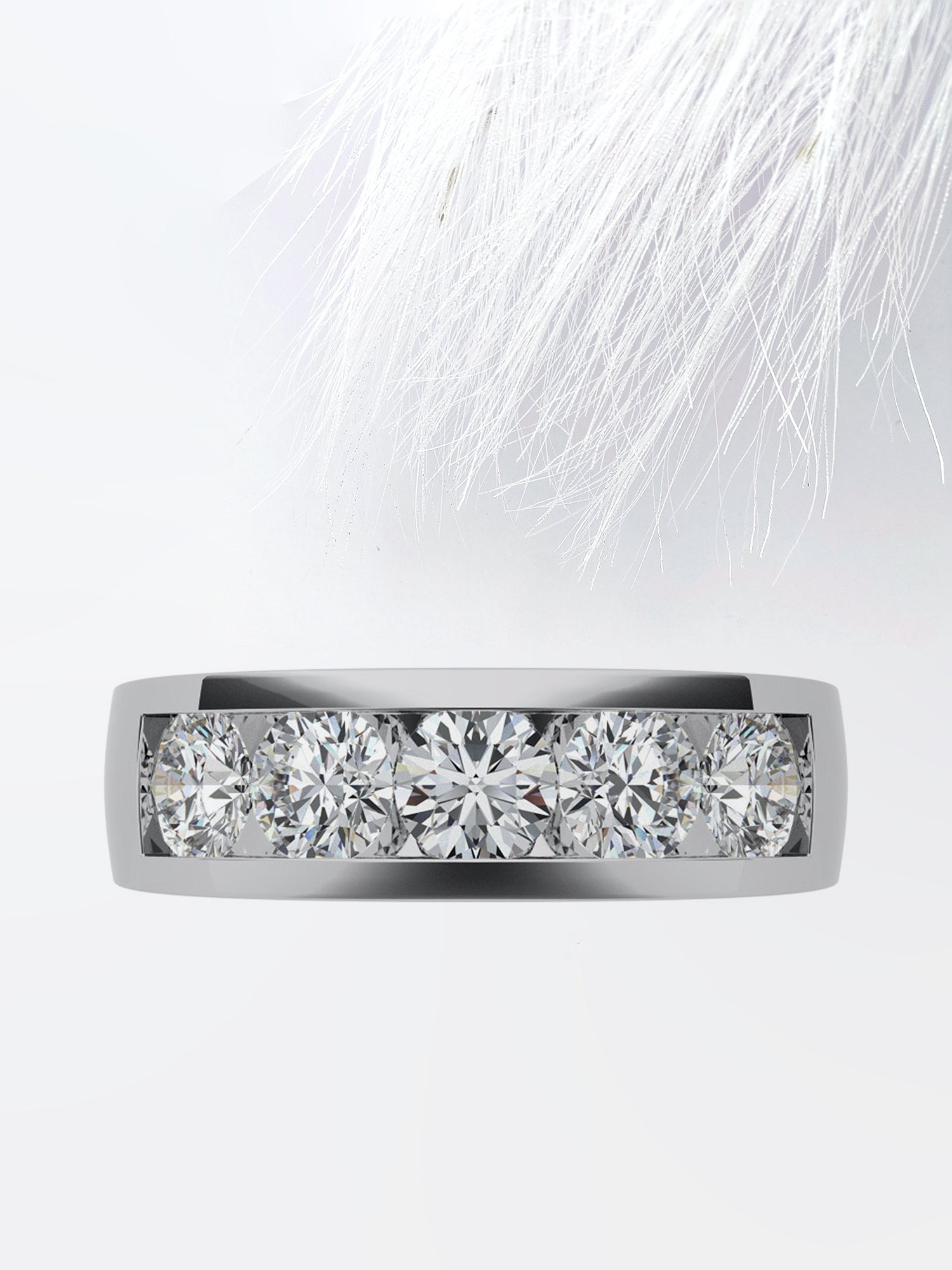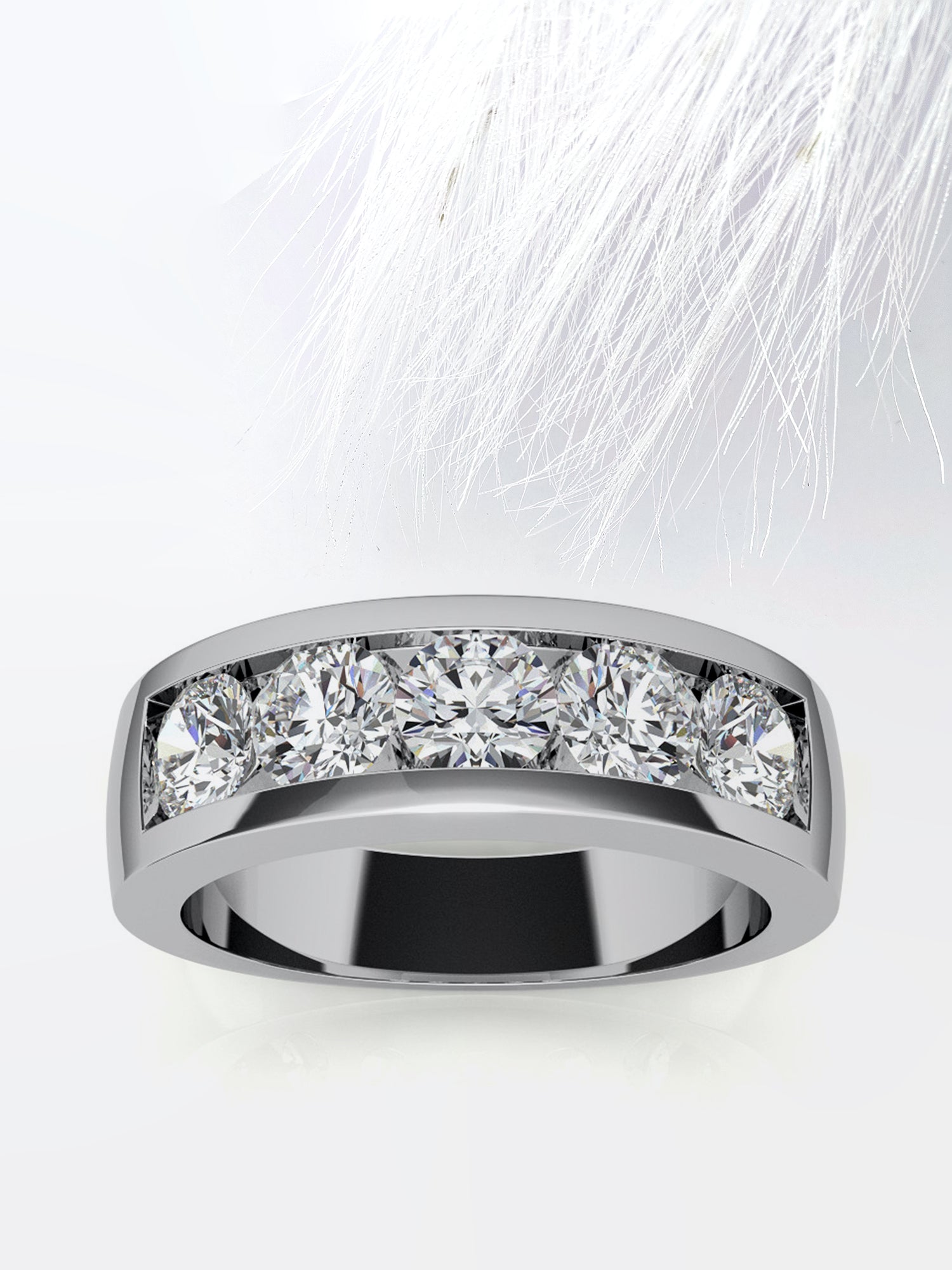 ✦ Introducing our distinguished Round Cut Five Stone with Channel Row Moissanite Men's Diamond Wedding Band. a blend of modern sophistication and timeless elegance. Crafted with precision. this exquisite wedding band features five round-cut moissanite stones set within a channel row. creating a sleek and contemporary design. Each moissanite stone sparkles with brilliance. adding a touch of luxury to the band. Made with eco-friendly moissanite gemstones. this band offers exceptional quality and sustainability without compromising on style. Its unique combination of five stones and channel setting makes it the perfect choice for the modern groom who seeks a distinctive and memorable wedding band. Celebrate your eternal commitment with this extraordinary moissanite wedding band. destined to be treasured for a lifetime of memories.