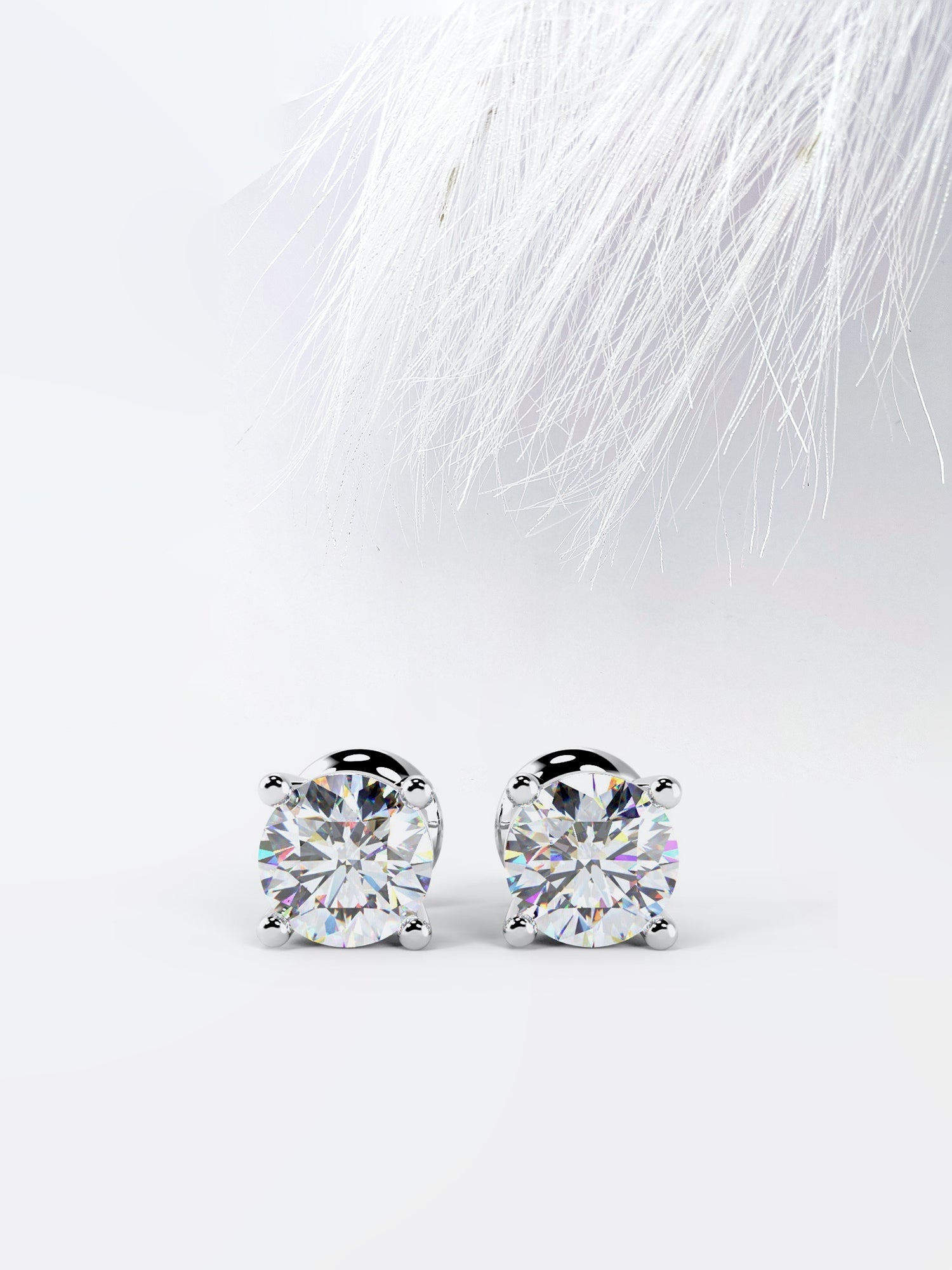 Round Cut Four Prong Moissanite Stud Diamond Earrings For Women
