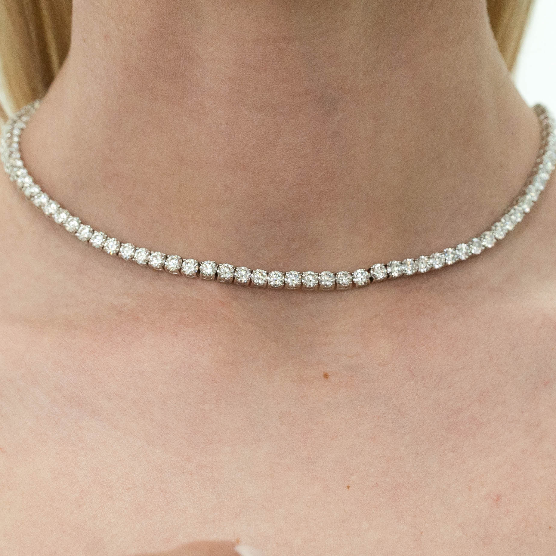 Round Cut Moissanite Riviera Diamond Tennis Necklace For Women