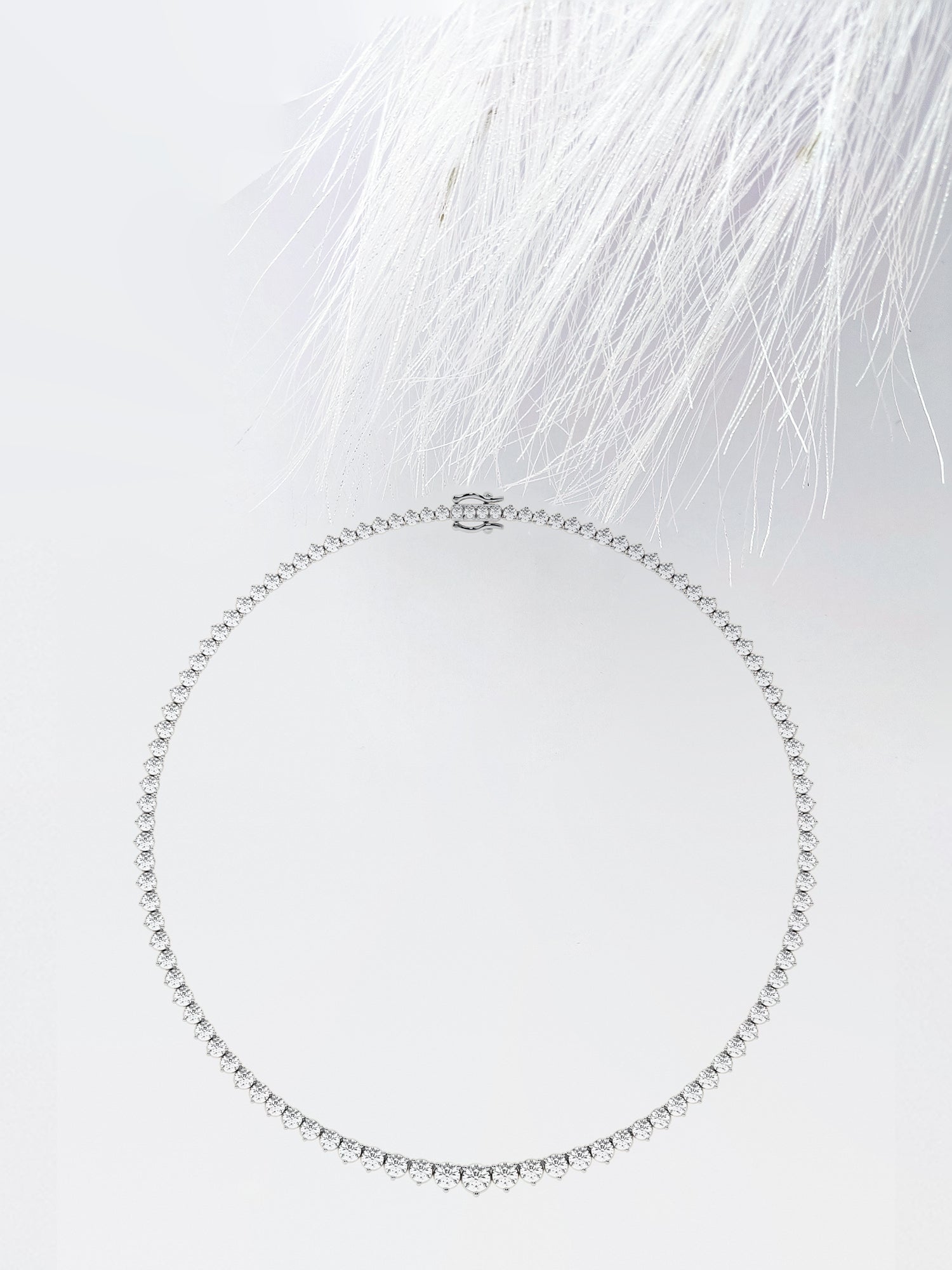 Round Cut Moissanite Riviera Diamond Tennis Necklace In White Gold