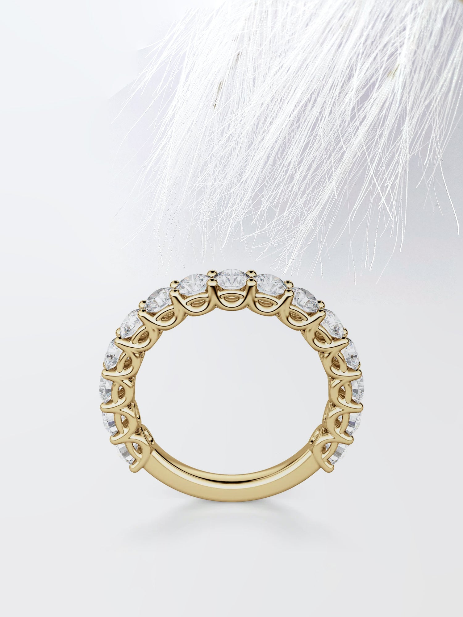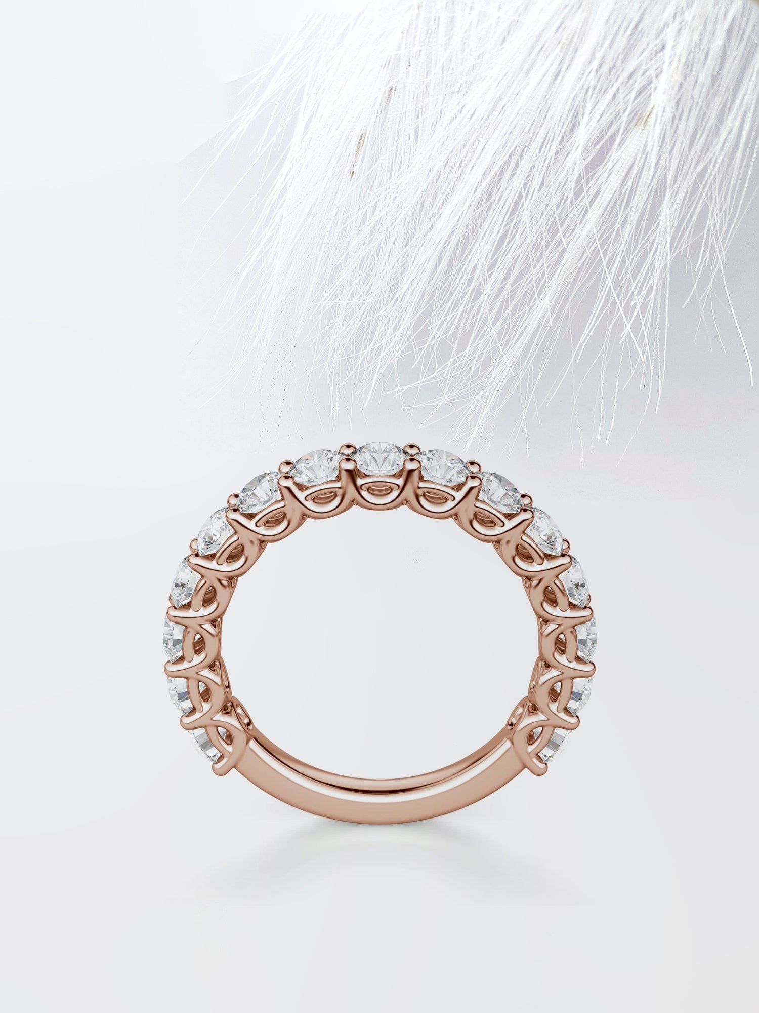 ✦ Emanate timeless elegance with our Round Cut Semi Eternity (3/4) Diamond Wedding Band for Women. Crafted with precision. this band features a continuous row of sparkling round-cut diamonds that adorn three-quarters of the circumference. Symbolizing eternal love and commitment. each diamond is meticulously set to enhance its brilliance. The semi eternity design offers versatility. allowing it to be paired effortlessly with an engagement ring or worn alone for understated elegance. Whether exchanged on your wedding day or as a cherished anniversary gift. this wedding band is a timeless symbol of your enduring affection and devotion. destined to be treasured for a lifetime.
