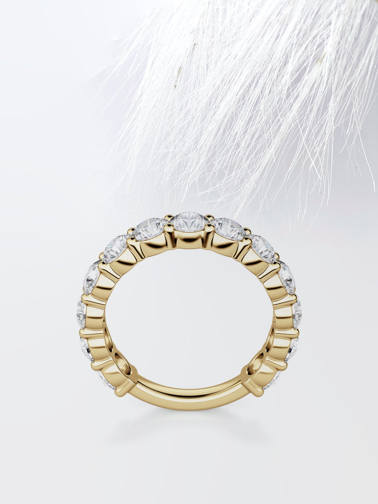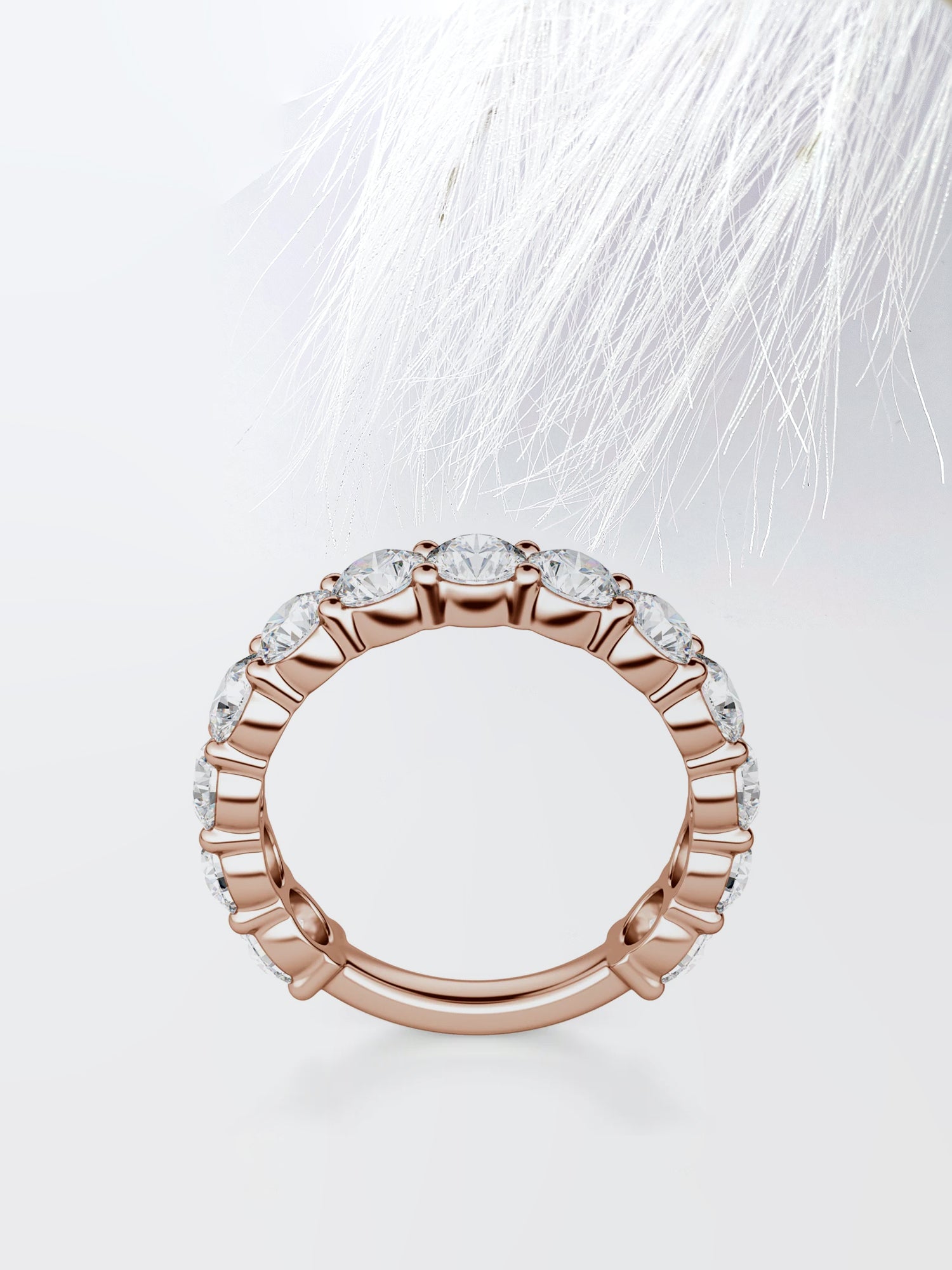 ✦ Elevate her elegance with our Round Cut Semi-Eternity Band Diamond Wedding Band for Women. Crafted with precision. this band features a continuous row of sparkling round-cut diamonds adorning half of the band's circumference. symbolizing everlasting love and commitment. The semi-eternity design offers a perfect balance of glamour and comfort. allowing it to be worn effortlessly every day. Whether exchanged on your wedding day or presented as a cherished anniversary gift. this wedding band is a timeless symbol of your enduring affection. destined to be treasured for a lifetime.