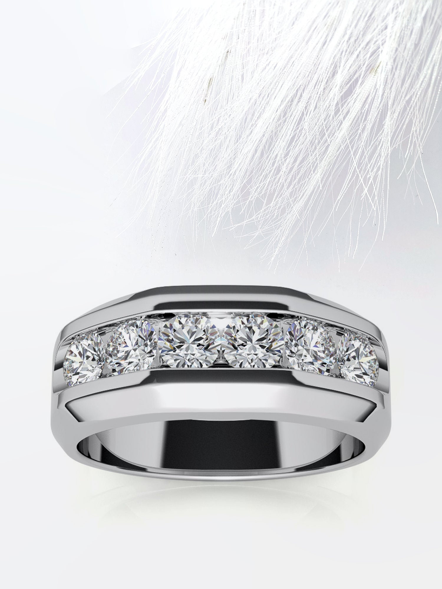 Round Cut Six Stone Moissanite Men's Diamond Wedding Band