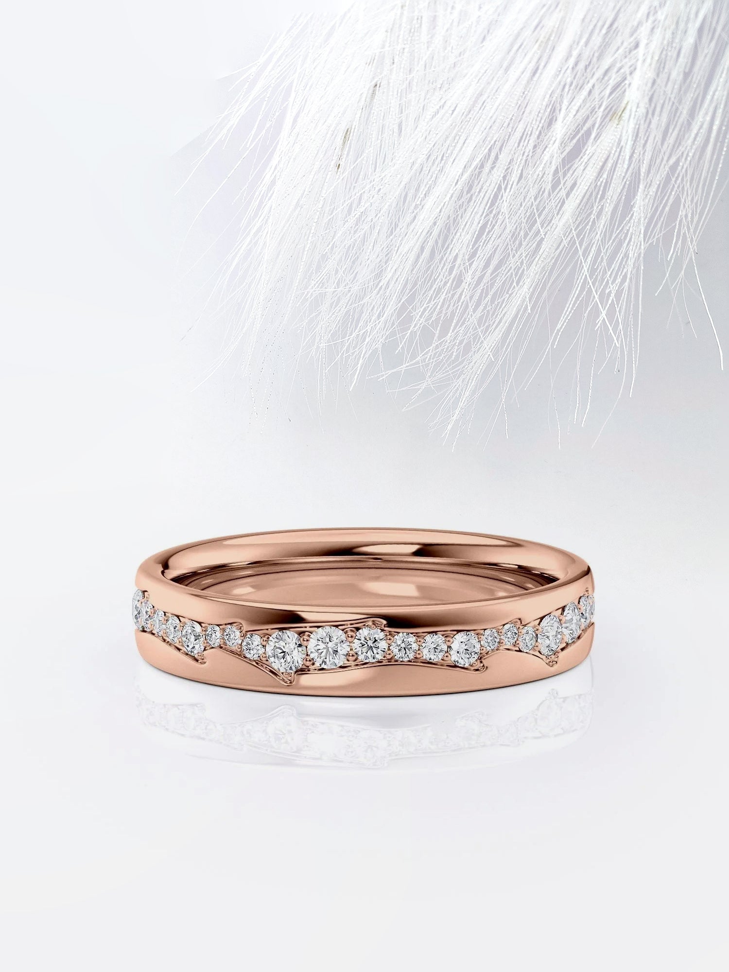 ✥ Introducing the Round Cut 'The Diamond Twig Cigar' Moissanite Men's Diamond Wedding Band. a captivating blend of natural inspiration and modern elegance. Meticulously crafted. this band features brilliant Moissanite stones in a classic round cut. nestled within intricate diamond twig cigar-inspired settings for a unique and sophisticated look. Ethically sourced and expertly designed. this ring symbolizes enduring love and refined luxury. Whether exchanged as a symbol of commitment or worn as a distinctive accessory. this wedding band exudes unmatched charm and brilliance. making it the ideal choice for the groom who seeks both sophistication and individuality in his jewelry.