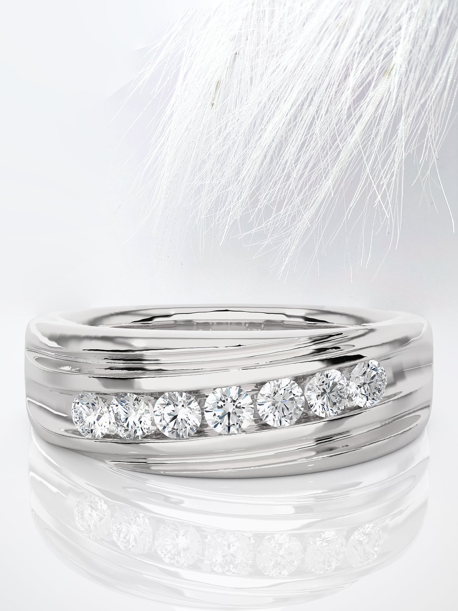 Round Shape Seven Stone Moissanite Men's Wedding Band
