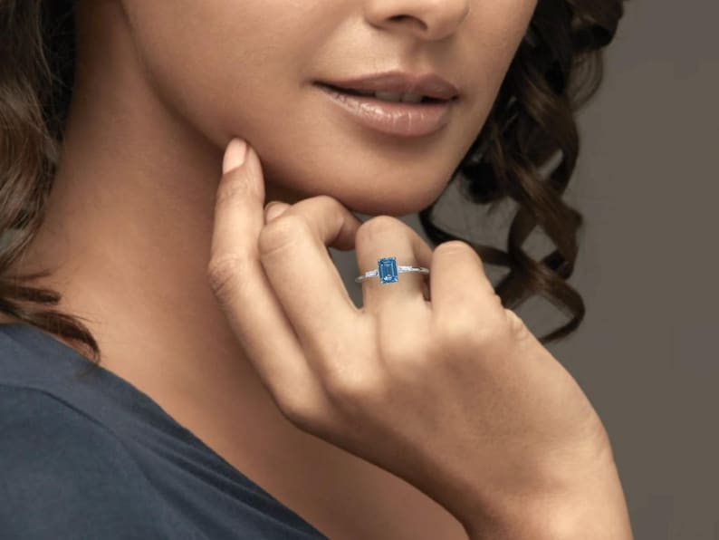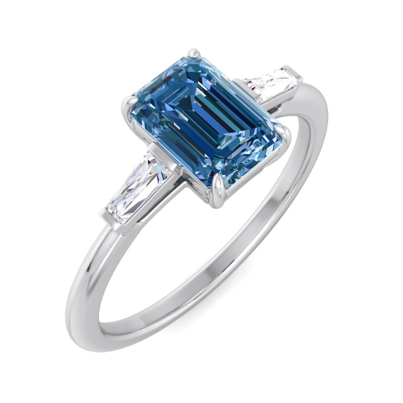 Three Stone Emerald Cut Diamond Moissanite Engagement Ring